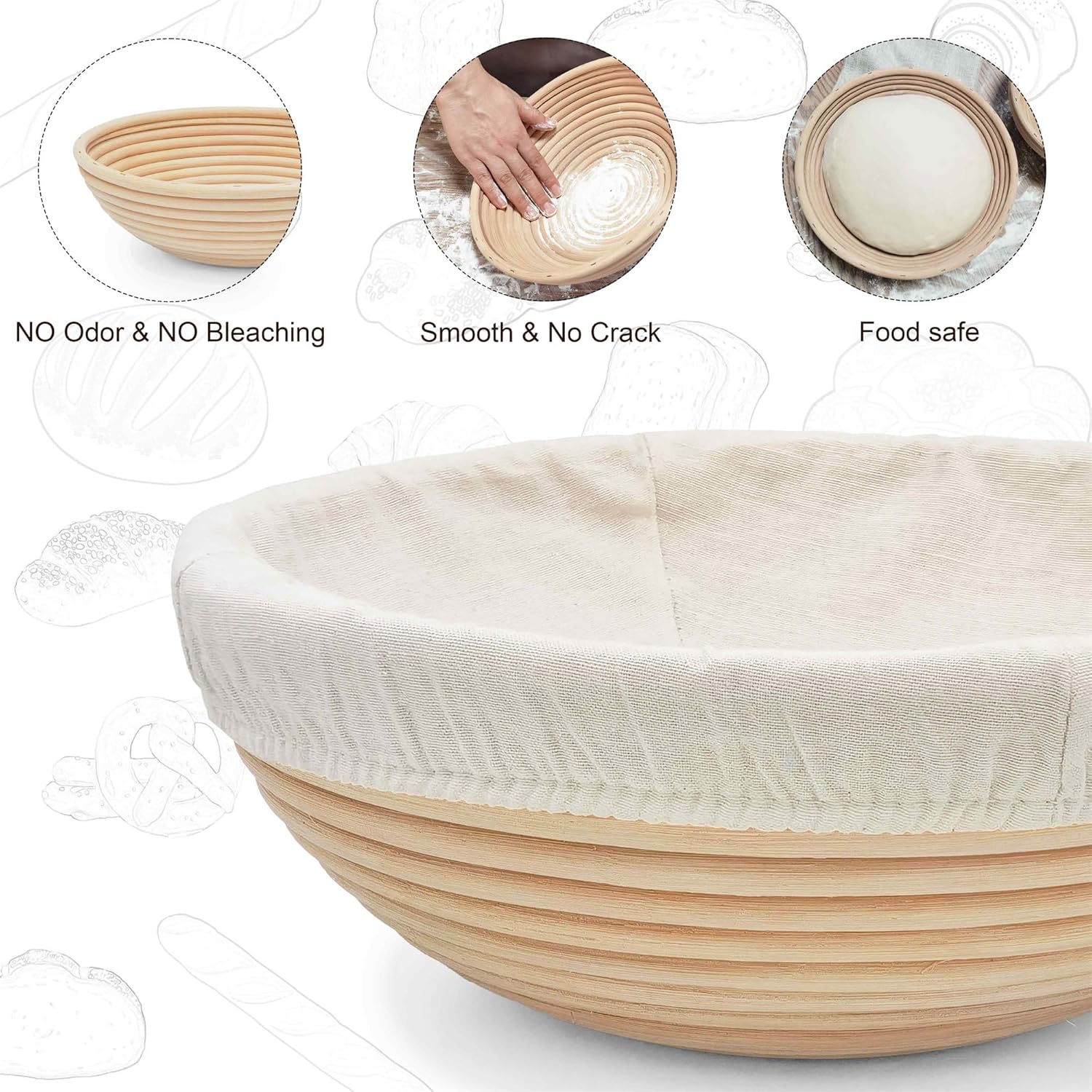 - Easy to Clean and Store:Easily clean the basket with water and a soft brush. After washing, air dry thoroughly before storing to ensure long-lasting performance and hygiene for future baking projects.