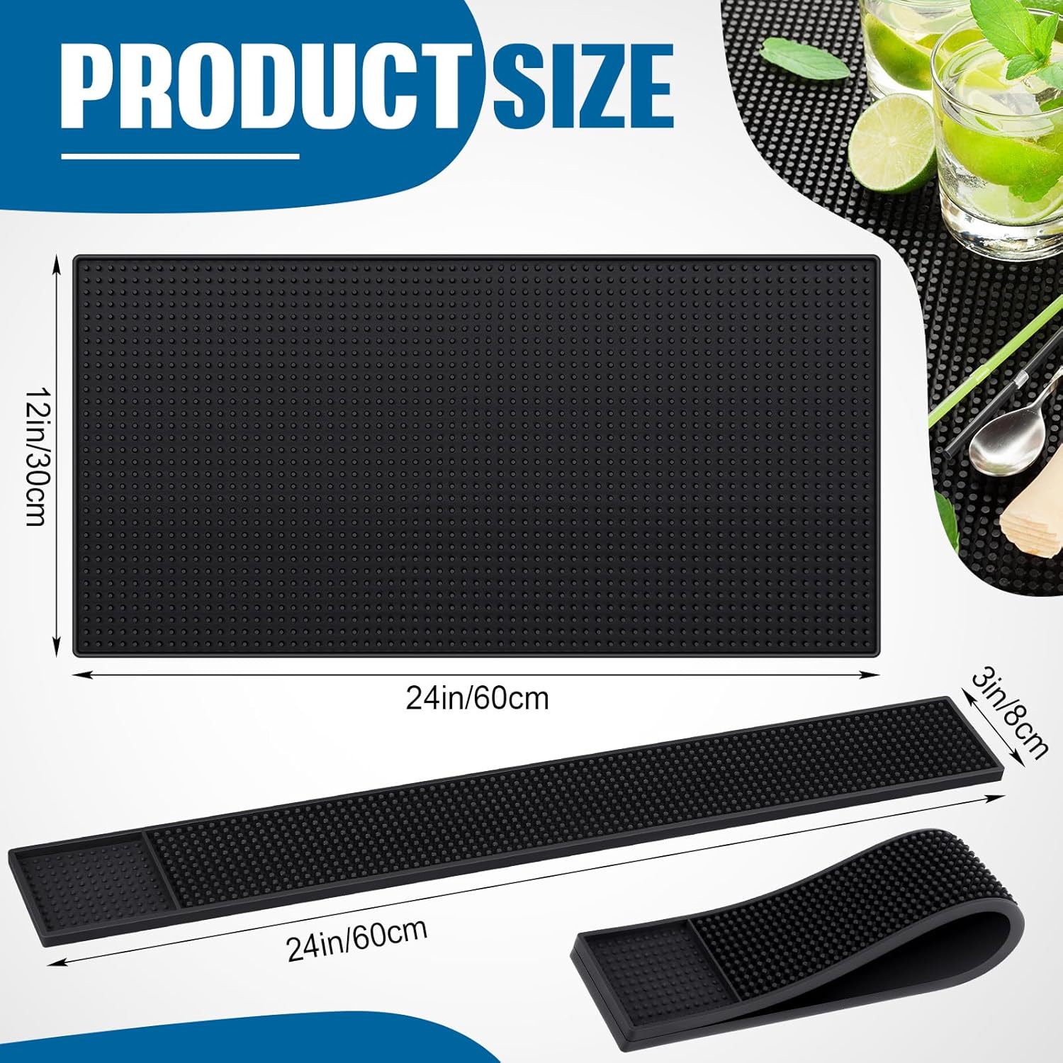 4 Pcs Thick Rubber Bar Mats for Bartending, Durable Non-Slip Spill Mat for Countertop, Home Kitchen, Coffee Bars, and Restaurants Accessories, Black(24" X 12"+24" X 3")