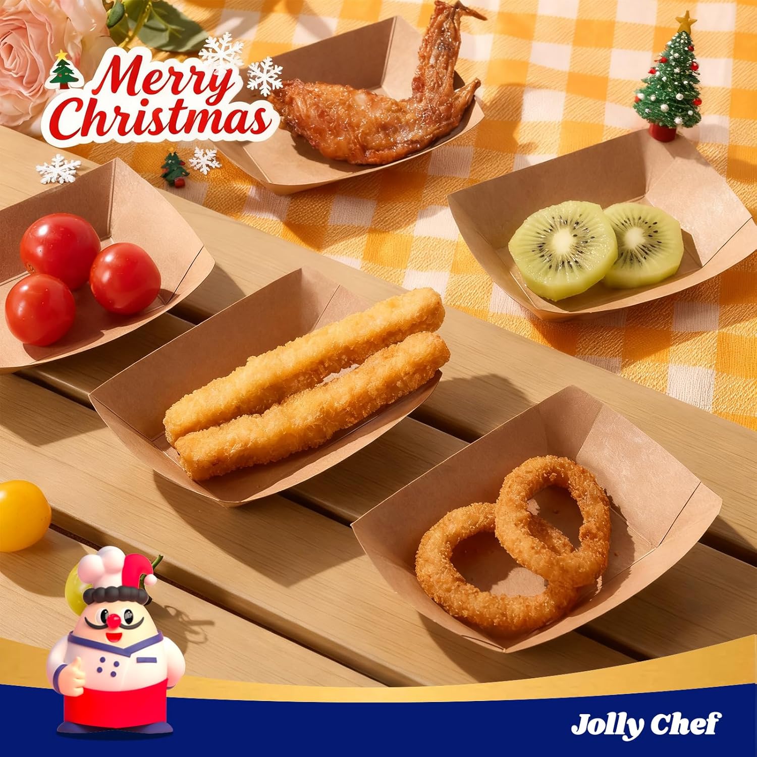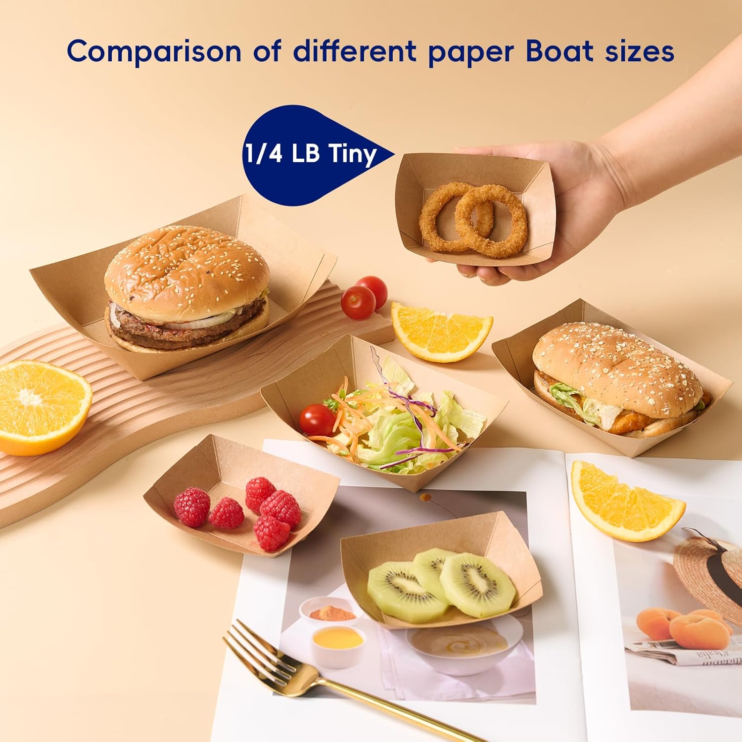 JOLLY CHEF 250 Pack 1/4 Lb Paper Food Trays, Mini Disposable Boat, Paper Food Serving Tray for Snack Dessert Taco Nacho (Tiny)