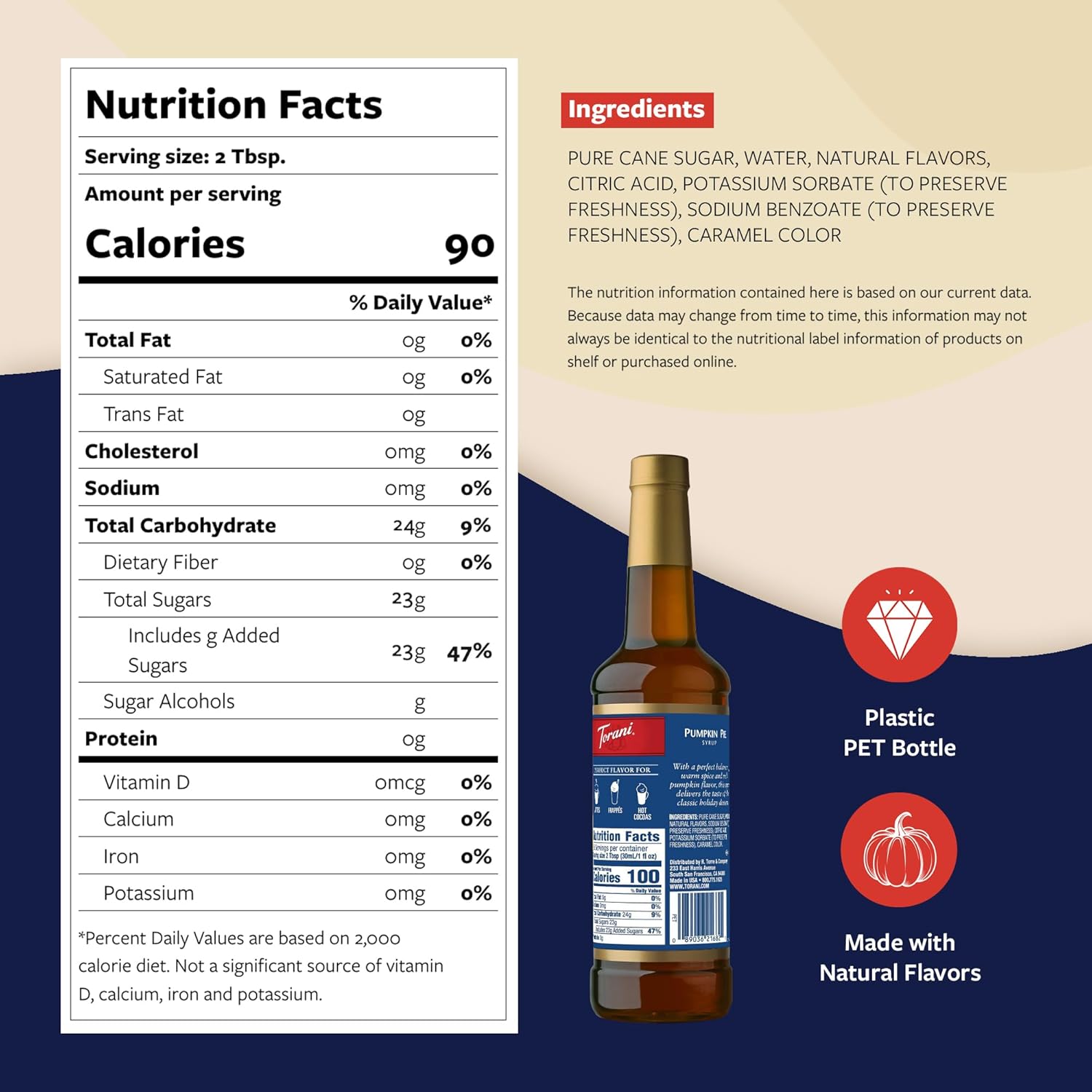 - CONVENIENT & MESS-FREE: The large 750 ml Torani Pumpkin Pie Syrup bottle, made of BPA-free plastic, comes with a high-quality pump for perfect portion control and effortless sweetening.