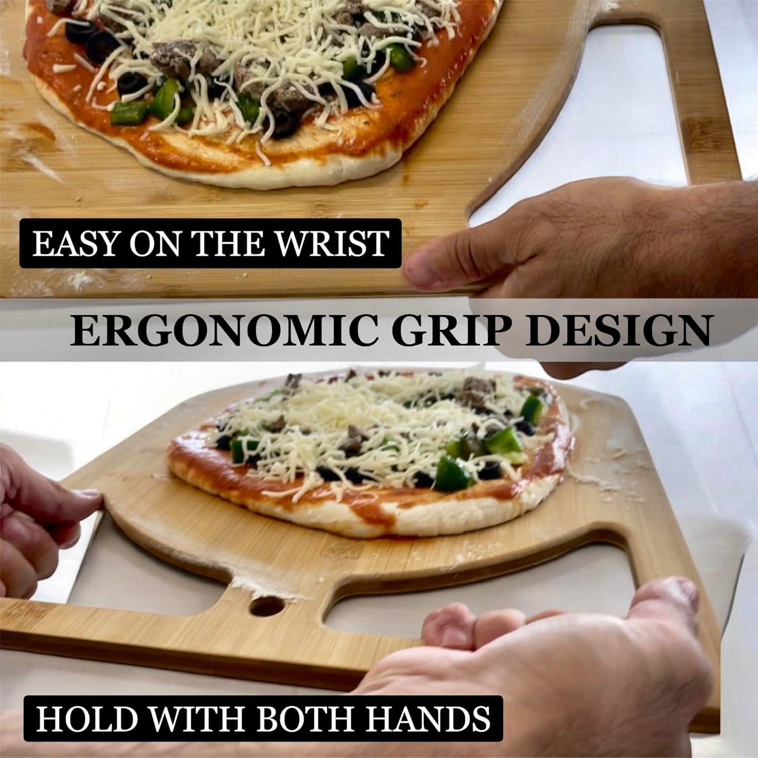 2-in-1 Wooden Pizza Peel & Bamboo Cutting Board | Dual Grip Pizza Paddle Board for Baking, Pizza Spatula & Large Cutting Board for Pizza | Pizza Turning Peel for Baking Accessories, 17" X 13.5"'