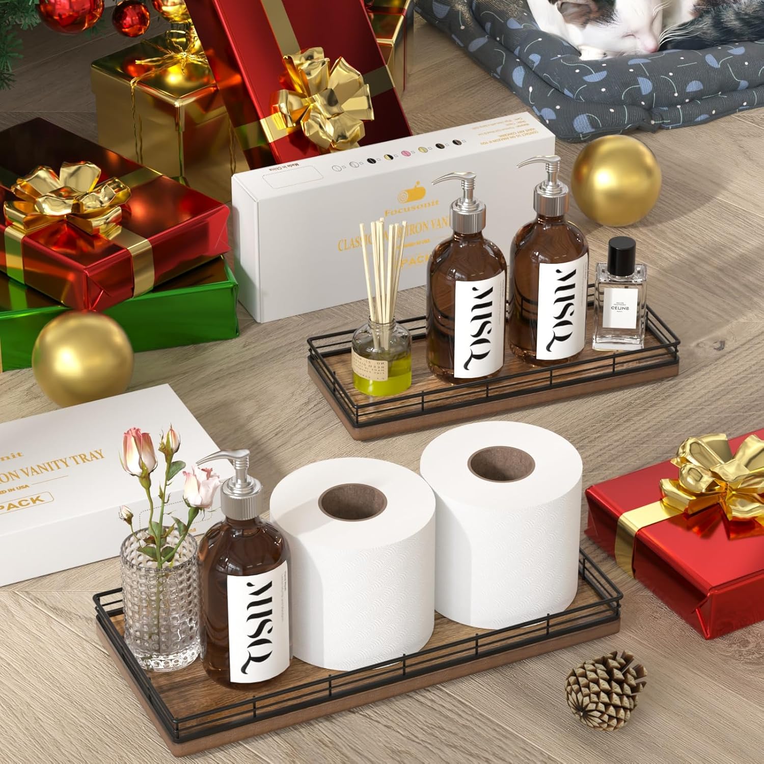 - Adaptability: This wooden bathroom counter tray easily switches between roles – from a stylish toilet paper basket for your back of toilet organizer to a convenient spice organizer on your kitchen countertop; Its adaptability extends to becoming a decorative table centerpiece tray in any corner of your home