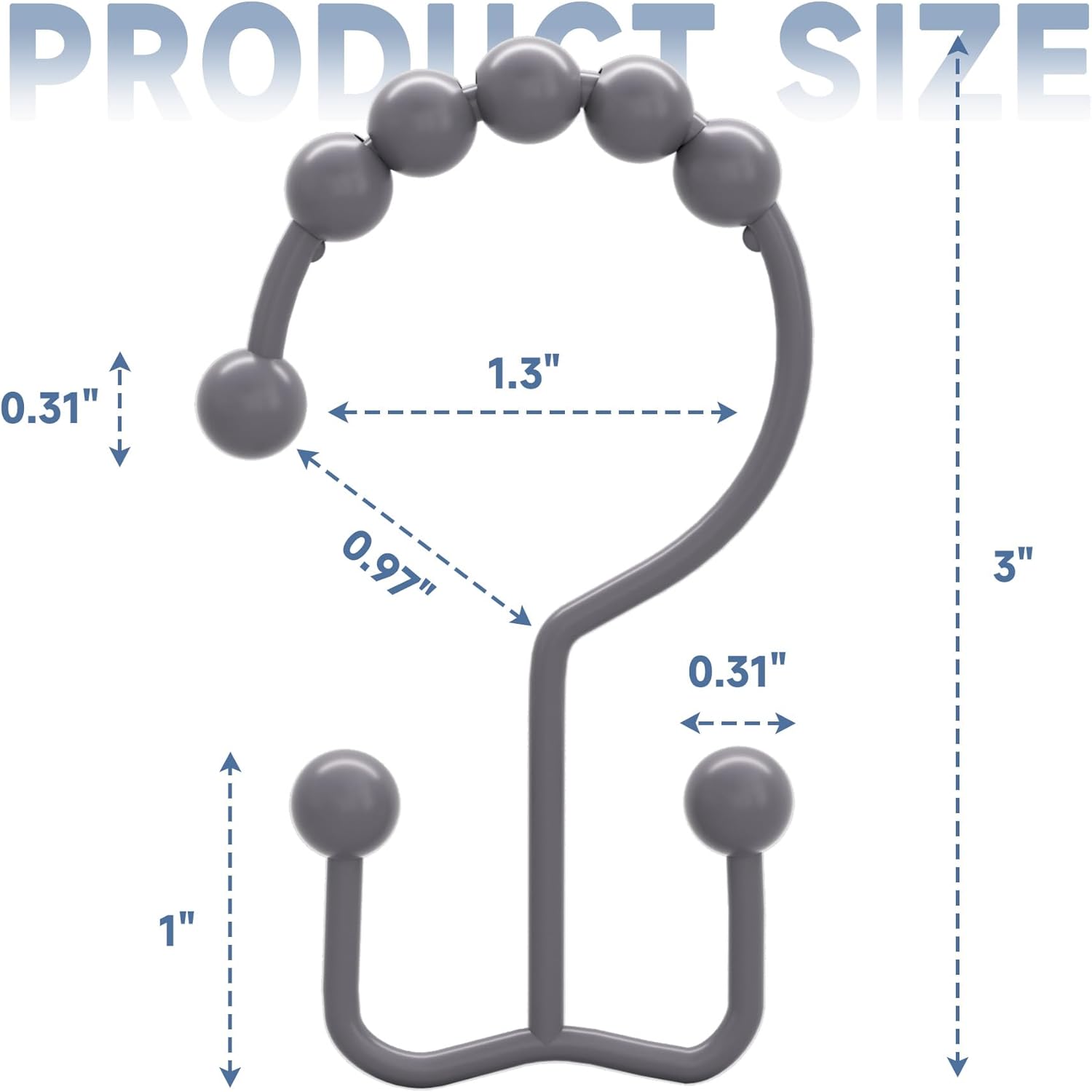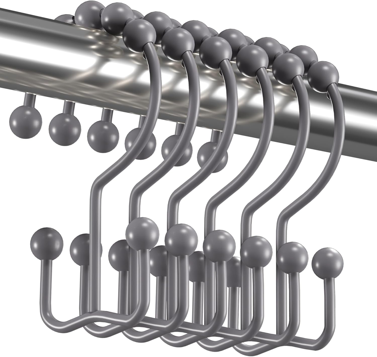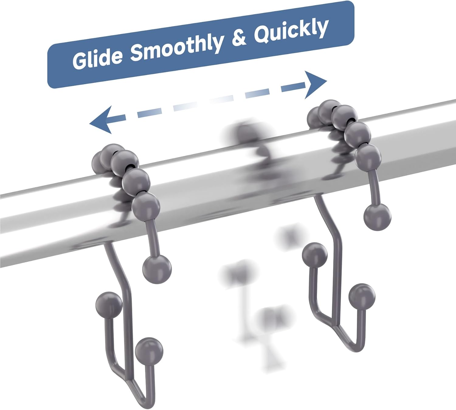- Smooth gliding -Engineered spherical roller balls of shower curtain hooks can glide smoothly and fast across shower rod.