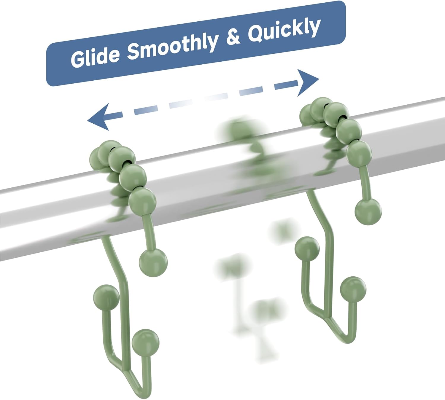 Titanker Shower Curtain Hooks Rings, Rust-Resistant Metal Double Glide Shower Hooks for Bathroom Shower Rods Curtains, Set of 12 Hooks - Sage Green
