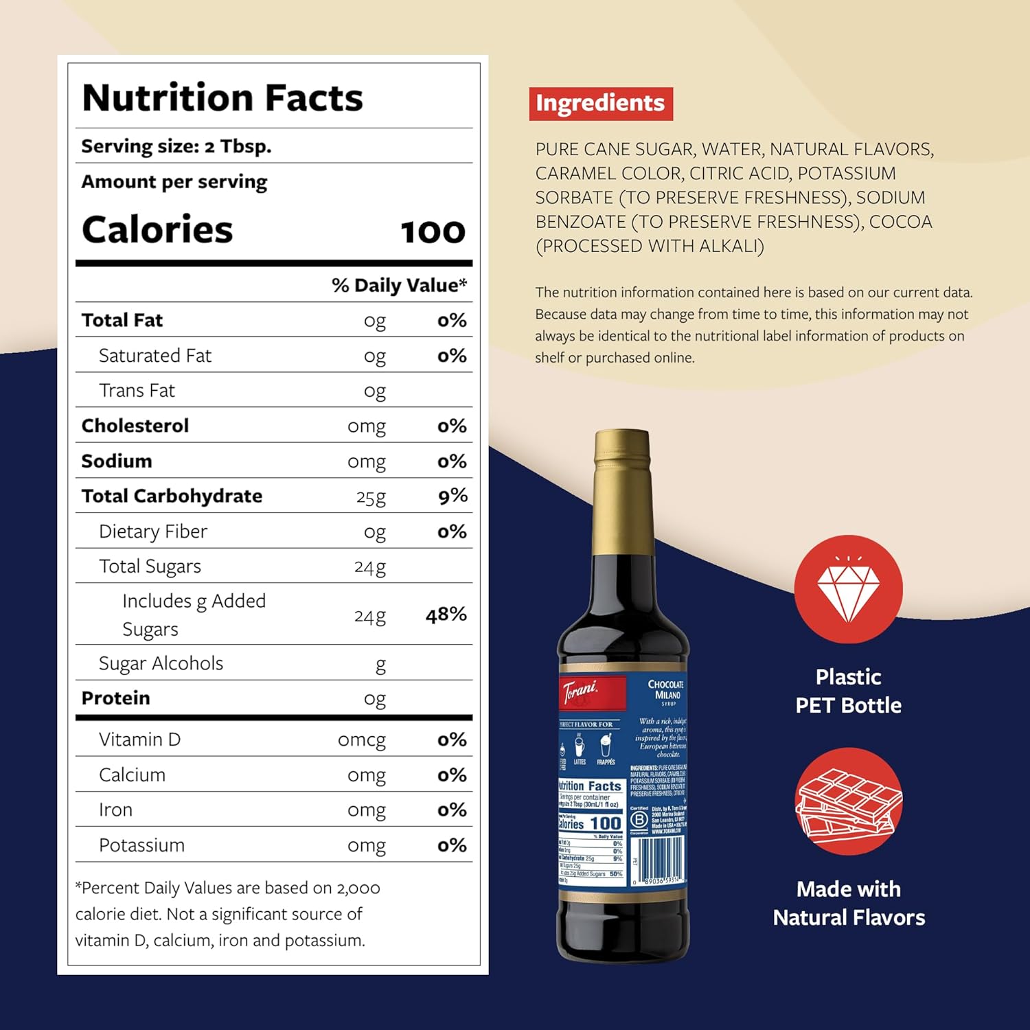 - CONVENIENT & MESS-FREE: The large 750 ml Torani Chocolate Milano Syrup bottle, made of BPA-free plastic, comes with a high-quality pump for perfect portion control and effortless sweetening.