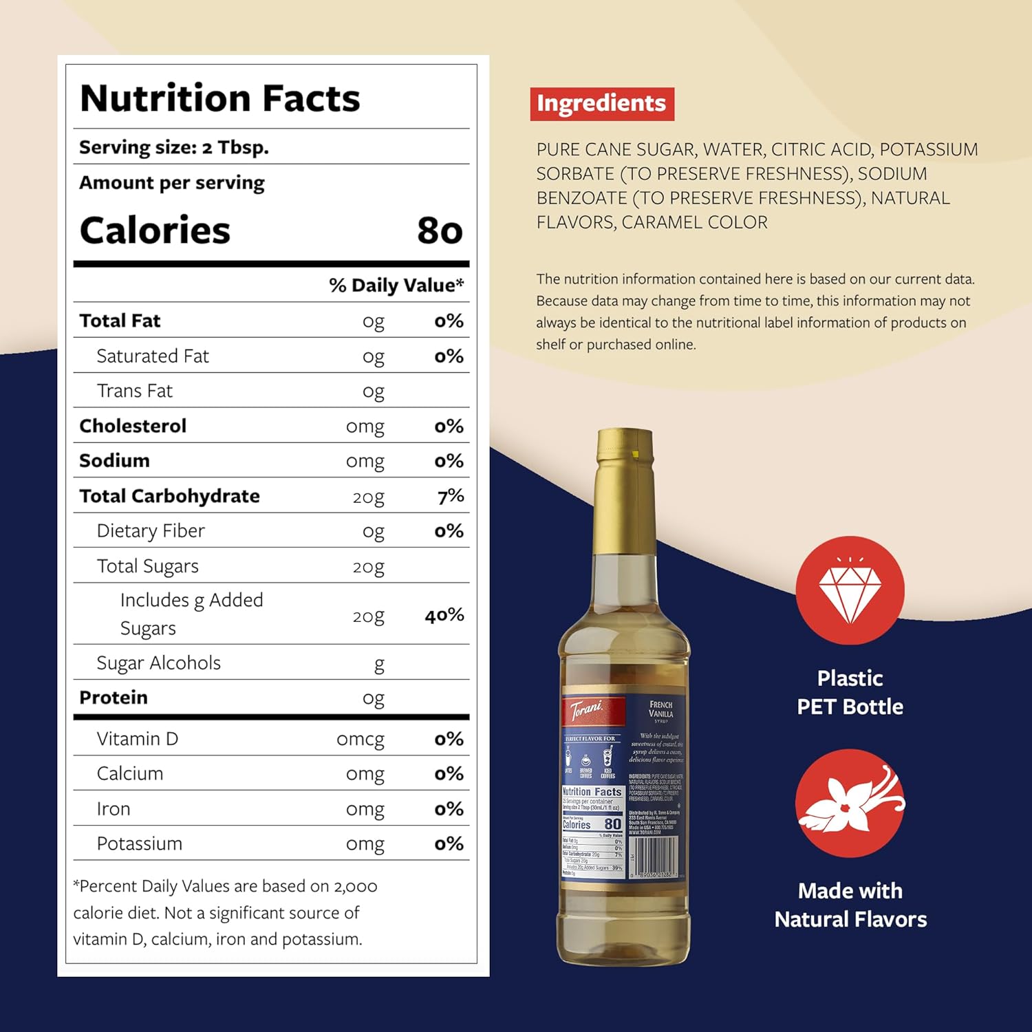 Torani Coffee Syrup, French Vanilla Flavored Syrup for Drinks, Pump Included, 25.4 Fl Oz