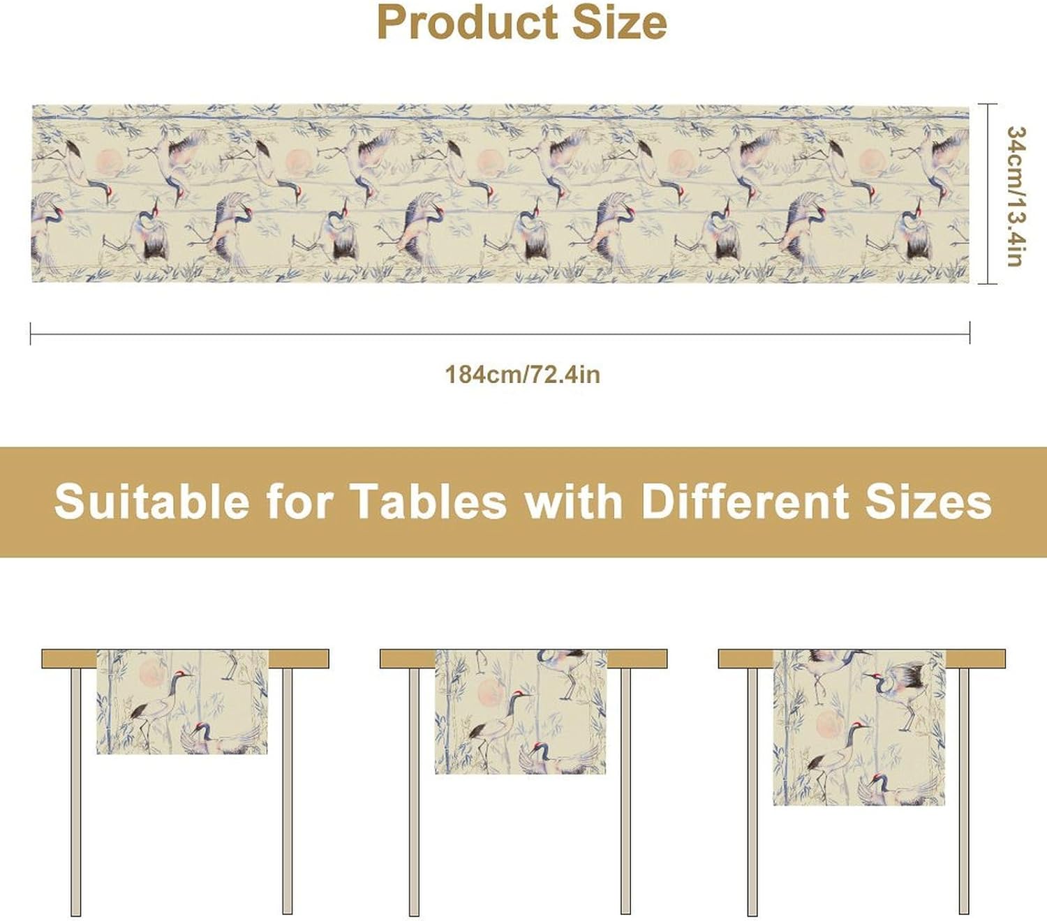 Japan Chinese Red-Crowned Crane Table Runner, Bamboo Ink Painting Animals Traditional Art Culture Table Runner for Holiday Home Living Room New Year Japanese Party Oriental, 13x70 Inch