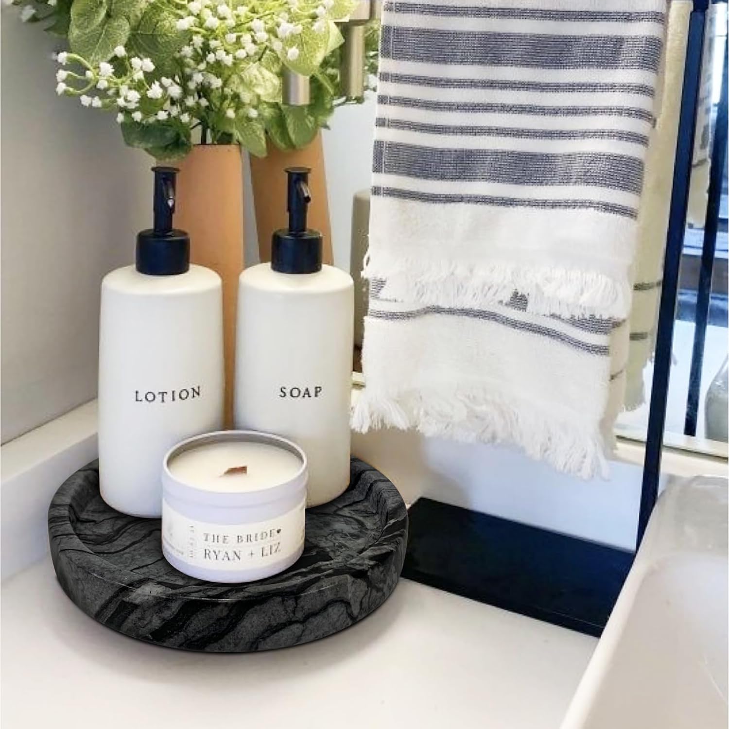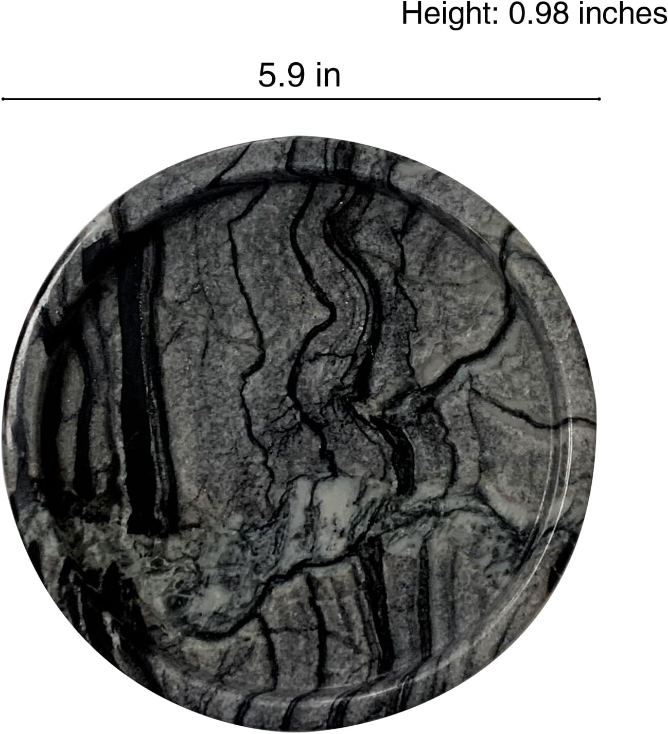 Travertine Tray, Small Ceramic Vanity Tray for Bathroom Counter Decor, Round Marble Decorative Trays for Coffee Table (Grey Black, Small Size)