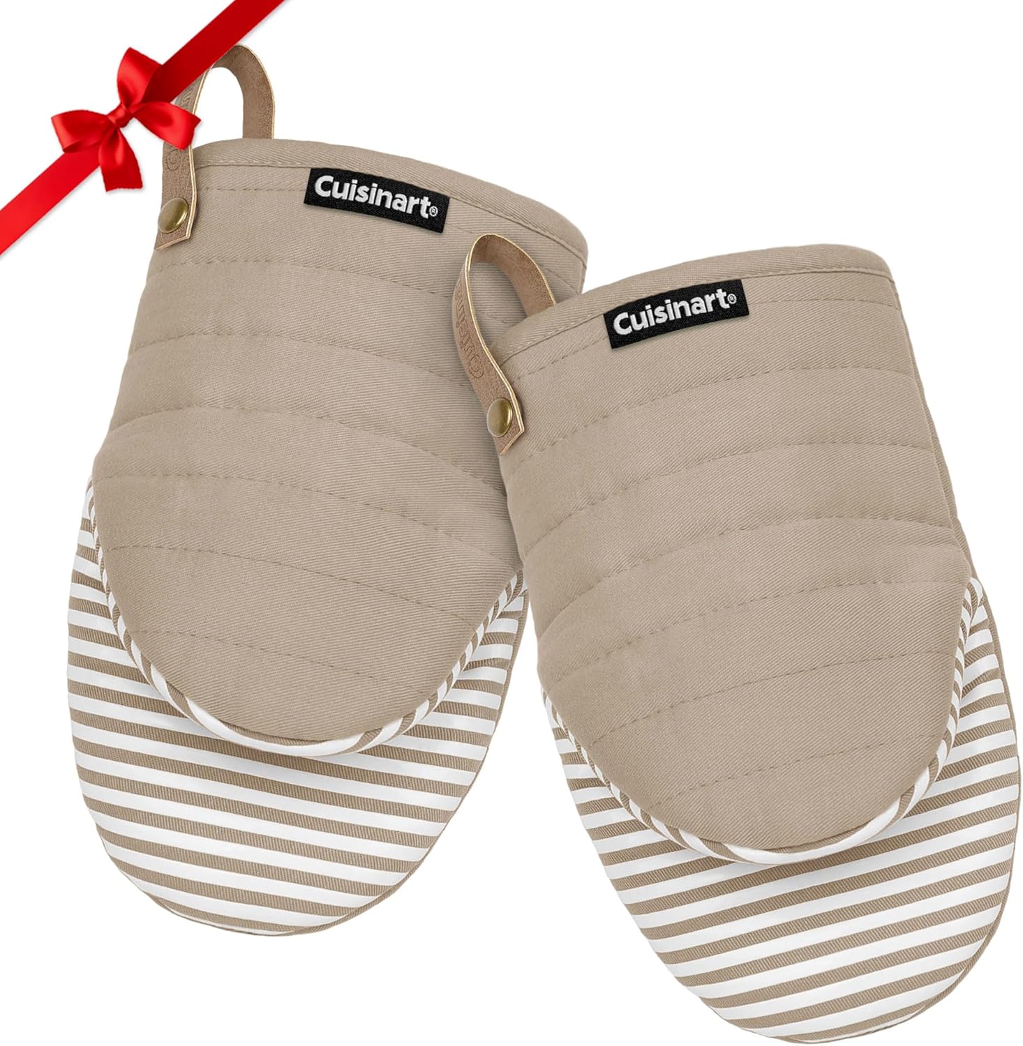 Cuisinart Mini Oven Mitts – 5.5” x 8” Heat-Resistant Kitchen Mitts for Oven with Non-Slip Printed Silicone, Cotton Filling, and Faux Leather Loop – Durable Oven Mitt Set for Cooking & Baking (Horizon)
