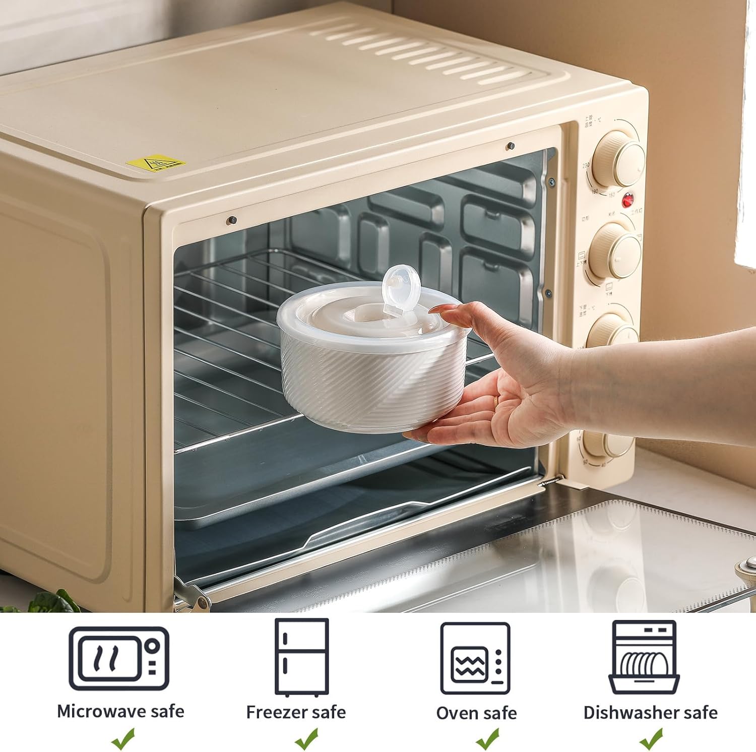 - Microwave & Oven Safe: When the bowl with lid is used in microwave, keep top pop up. When used in oven, the lid needs to be removed. The smooth glaze is easy to clean, and both bowls and lids are dishwasher safe