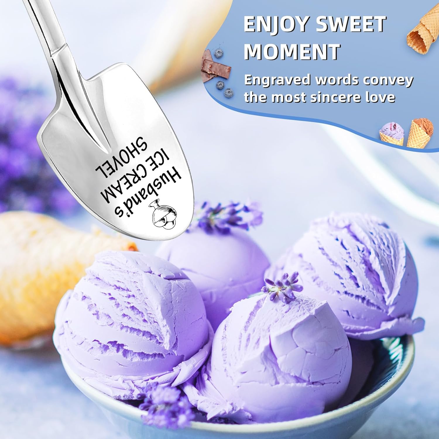 - THOUGHTFUL PERSONALIZED DESIGN – Featuring engraved messages that convey sincere affection, this ice cream shovel serves as a daily reminder of your love. It's among the most unique personalized gifts for husband that provides emotional inspirational support while adding a touch of romance to ordinary moments.