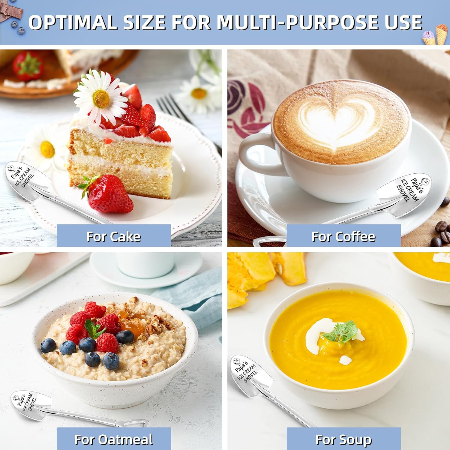 - MULTI-PURPOSE ICE CREAM SCOOP – Beyond just serving ice cream, this versatile tool is great for handling cake, coffee, oatmeal, and soup thanks to its optimal size. It’s a handy addition to any kitchen, ensuring dad enjoys sweet moments with ease and convenience in various settings.