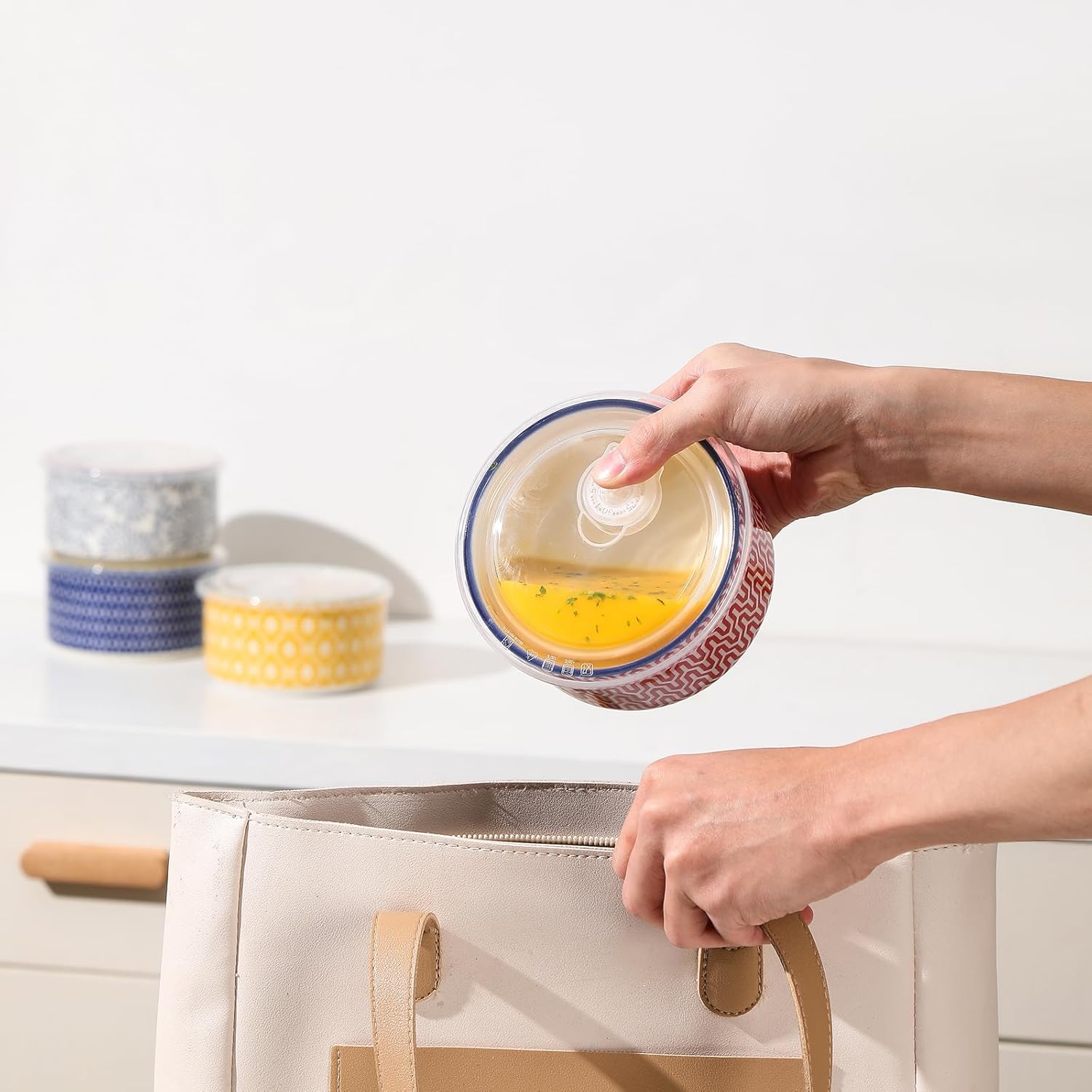 - EXQUISITE DESIGN & GORGEOUS PRESENT - Each small serving bowl with lid has a different design in vibrant color that brings a cheerful vibe to our dining times. These beautiful ceramic bowls are both home decoration and kitchen essentials. Whether for personal use or as a present to friends or family, it is an ideal present, suitable as a Housewarming, Birthday, Wedding parties present.