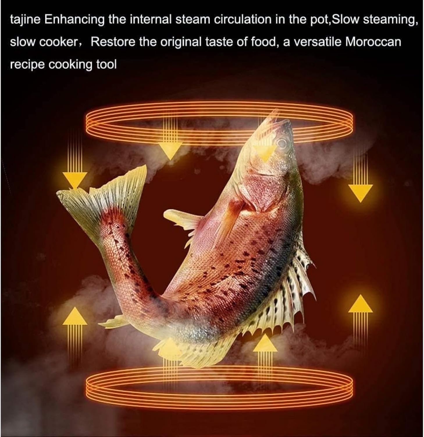 - Our tajin pot base is specially designed, durable structure that is not destroyed by heat and cold during cooking, which makes cooking easy, cooking is healthy, fast and energy-saving.