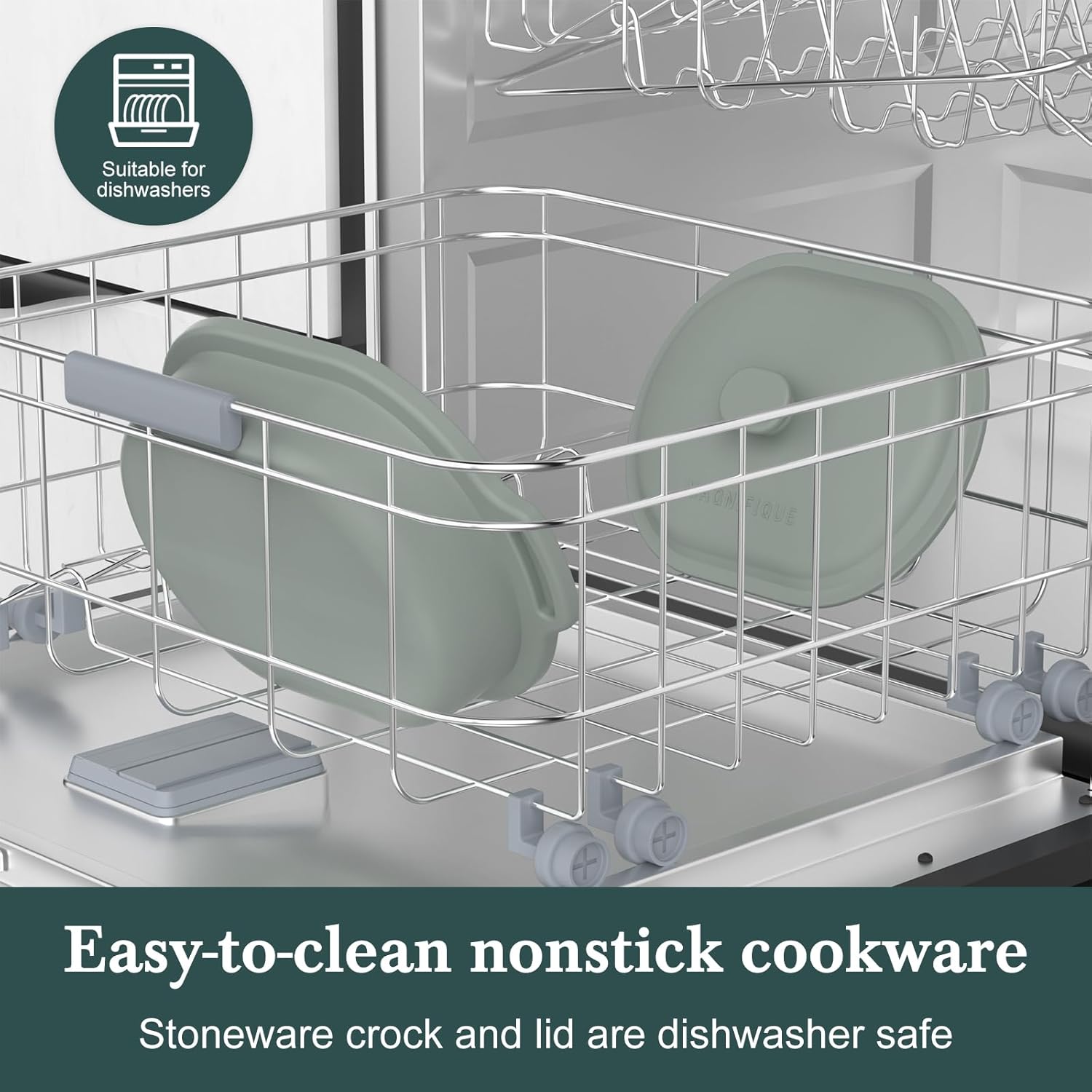 MAGNIFIQUE 4 Quart Programmable Casserole Slow Cooker, 8-in-1 Multi Cooker with Removable Non-Toxic Stoneware Crock, Claypot Slow Cooker, Rice-cooking, Nonstick, Oven Safe Pot to 450°F, Olive