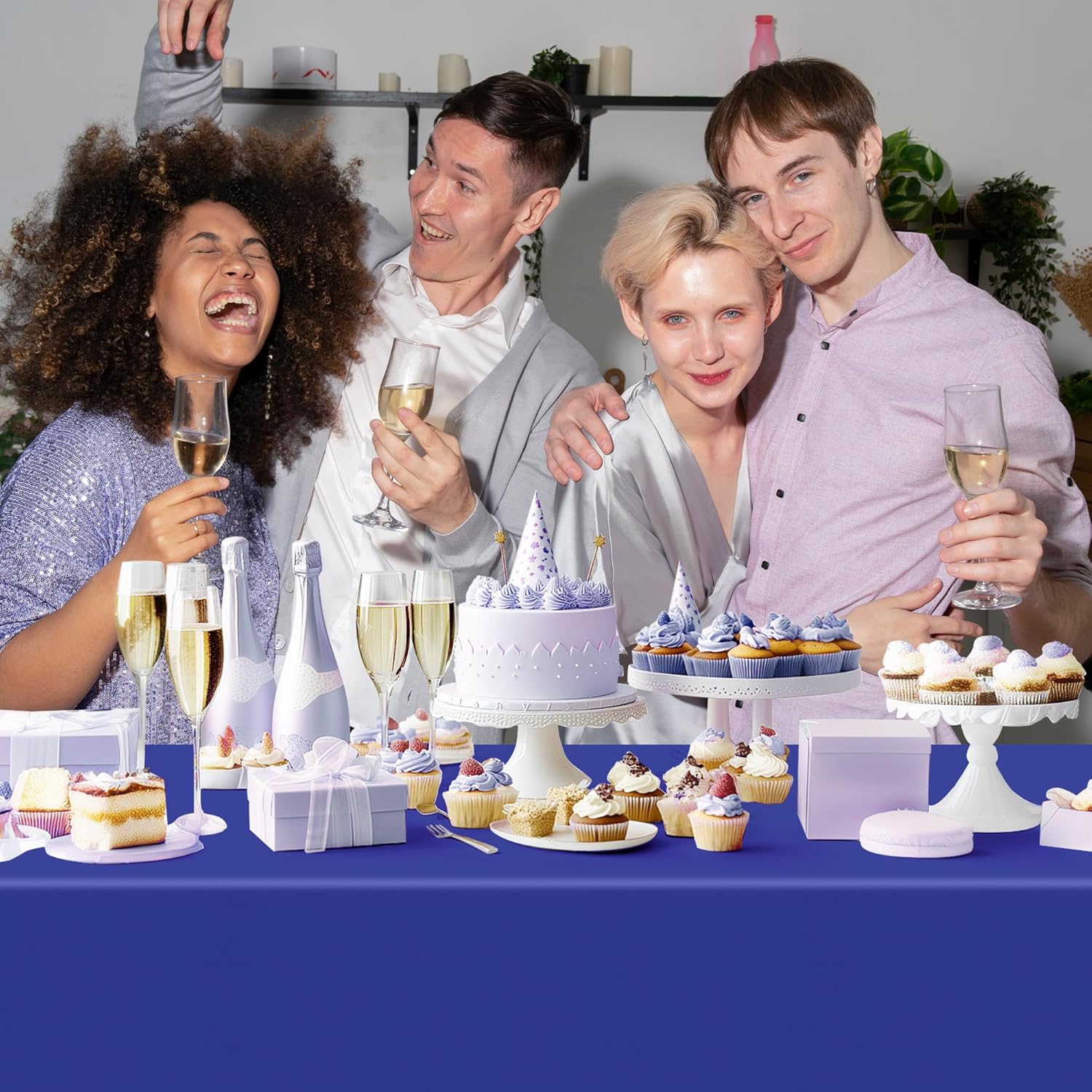 4 Pieces Blue & Purple Series Rectangle Tablecloth, 54x72" Solid Color Waterproof & Spillproof Disposable Plastic Table Cover, Durable Party Tablecloth for Dining, Buffet, Picnic, Outdoor Events