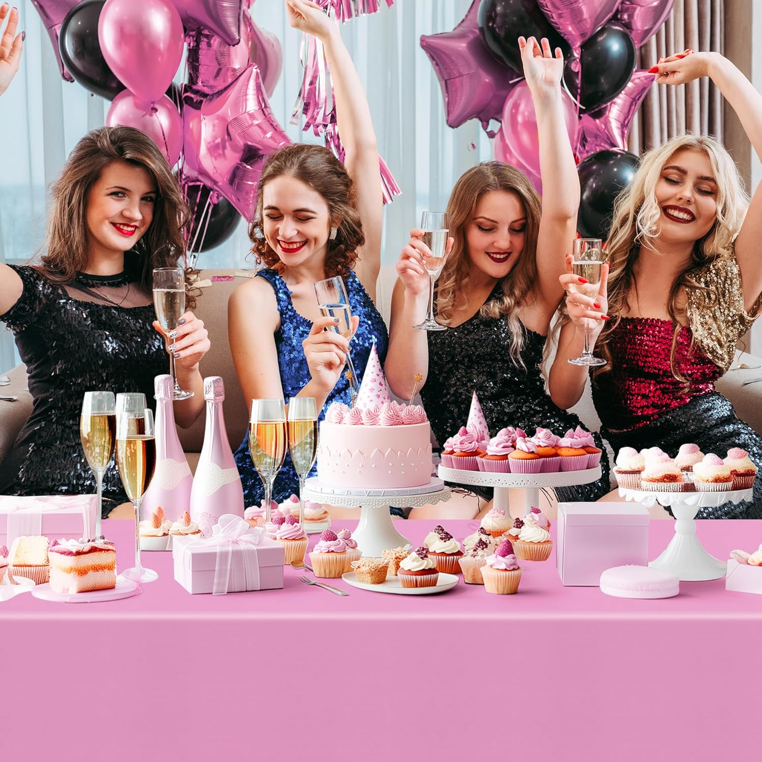 4 Pieces Pink Series Rectangle Tablecloth, 54x72 Solid Color Waterproof & Spillproof Disposable Plastic Table Cover, Durable Party Tablecloth for Dining, Buffet, Picnic, Outdoor Events