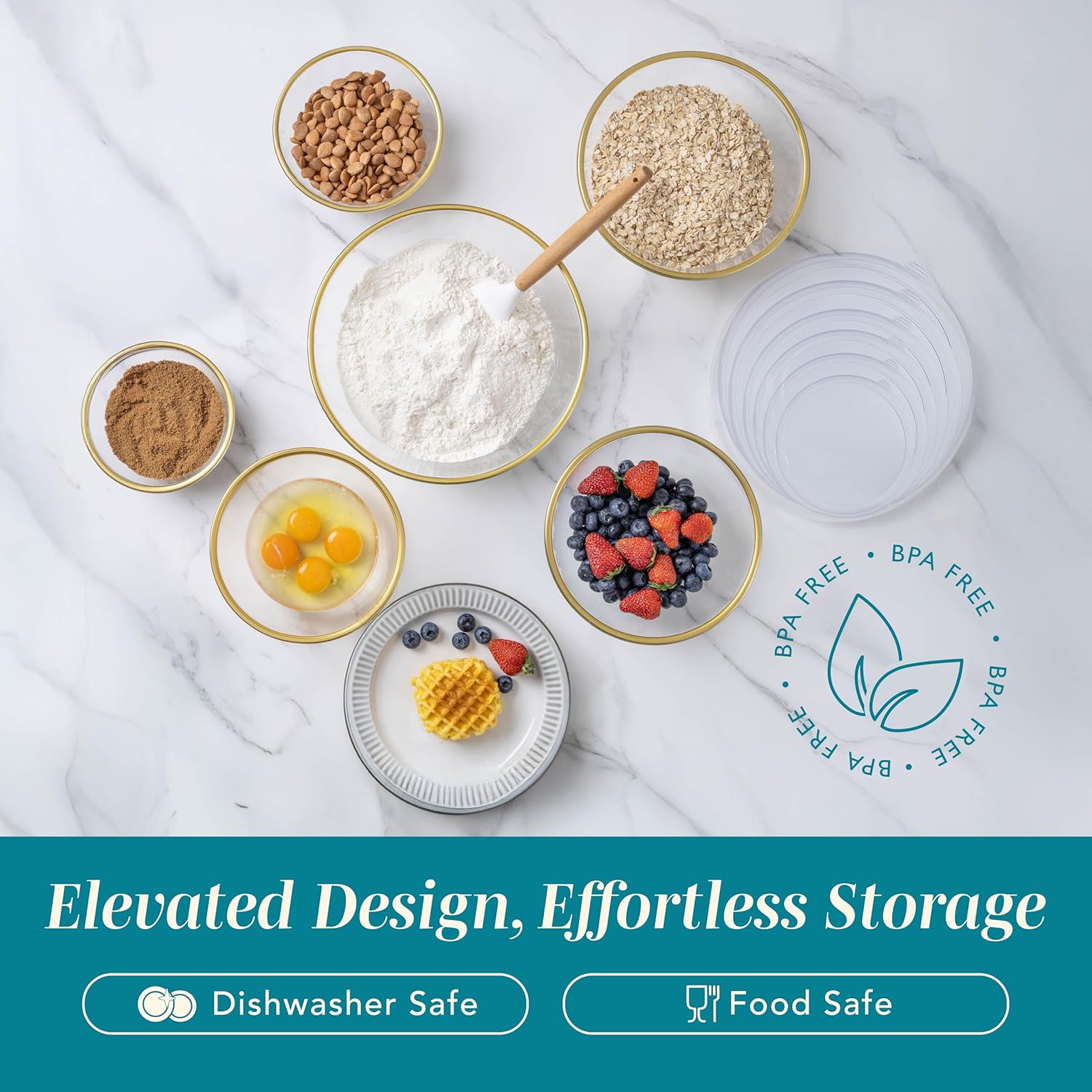 - Stylish Gold Rimmed Bowls: Eye-catching gold colored rim, add a pop of style to your kitchen while keeping food fresh and securely sealed with a leakproof design.