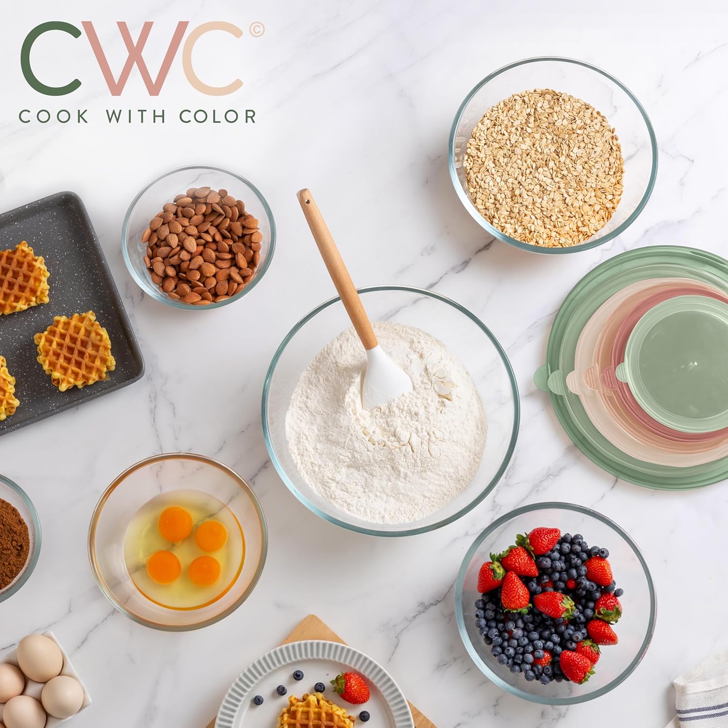 COOK WITH COLOR 12 Pc Glass Mixing Bowl Set with Lids – Borosilicate Glass Nesting Bowls for Cooking, Baking and Meal Prep, Multicolor