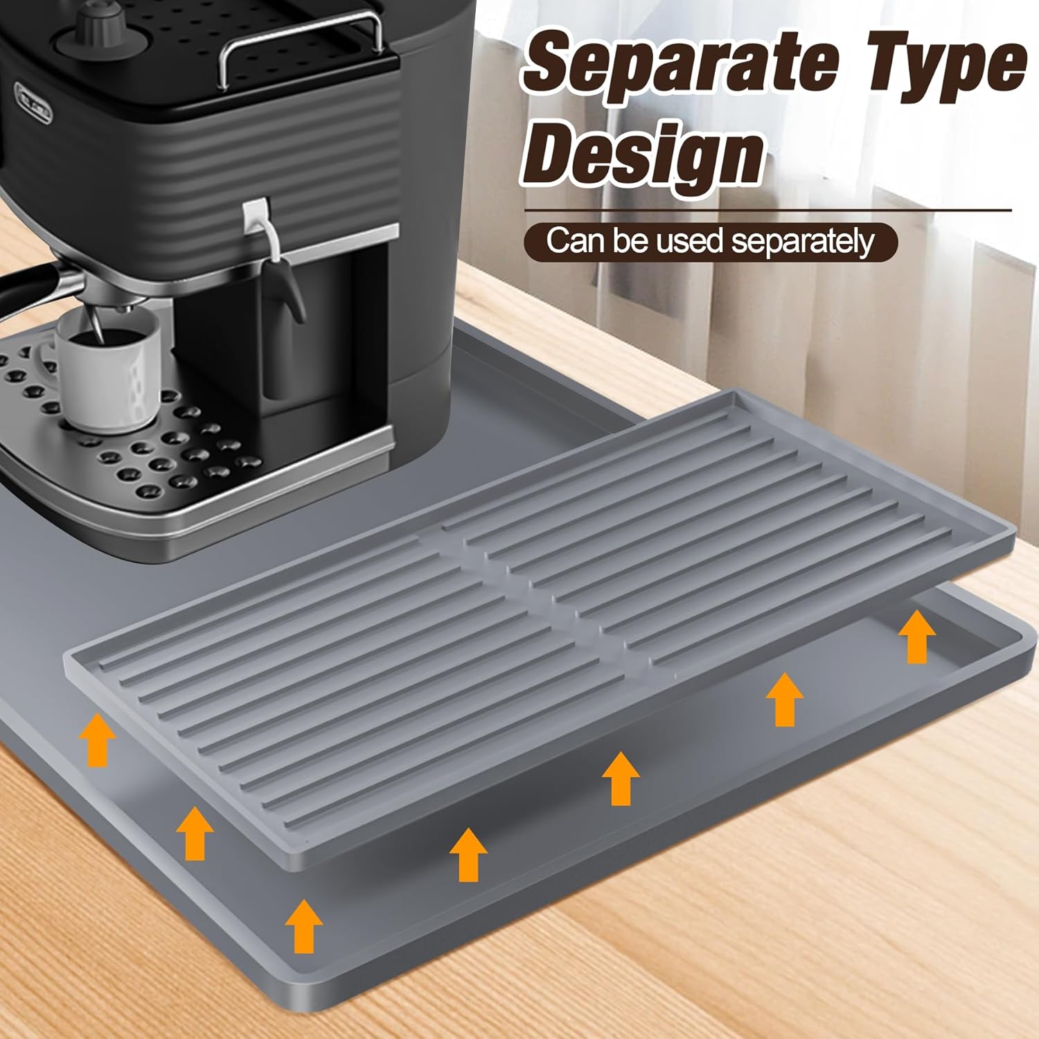 Premium Dish Drying Mat & Removable Coffee Bar Mat - 24x16 Inch Quick-Dry Silicone Mat, Heat/Waterproof Non-Slip Protector for Sink, Espresso Machine, Dishwasher Safe & Cabinets (Gray)