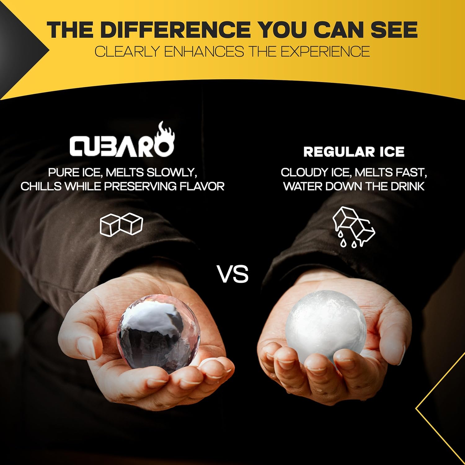 - SLOW-MELTING, PURE TASTE – Large 2-inch round ice cubes melt slower than standard cubes, keeping your Old Fashioneds, scotch & signature cocktails cold, smooth & perfectly balanced sip after sip with clear ice made for whiskey.