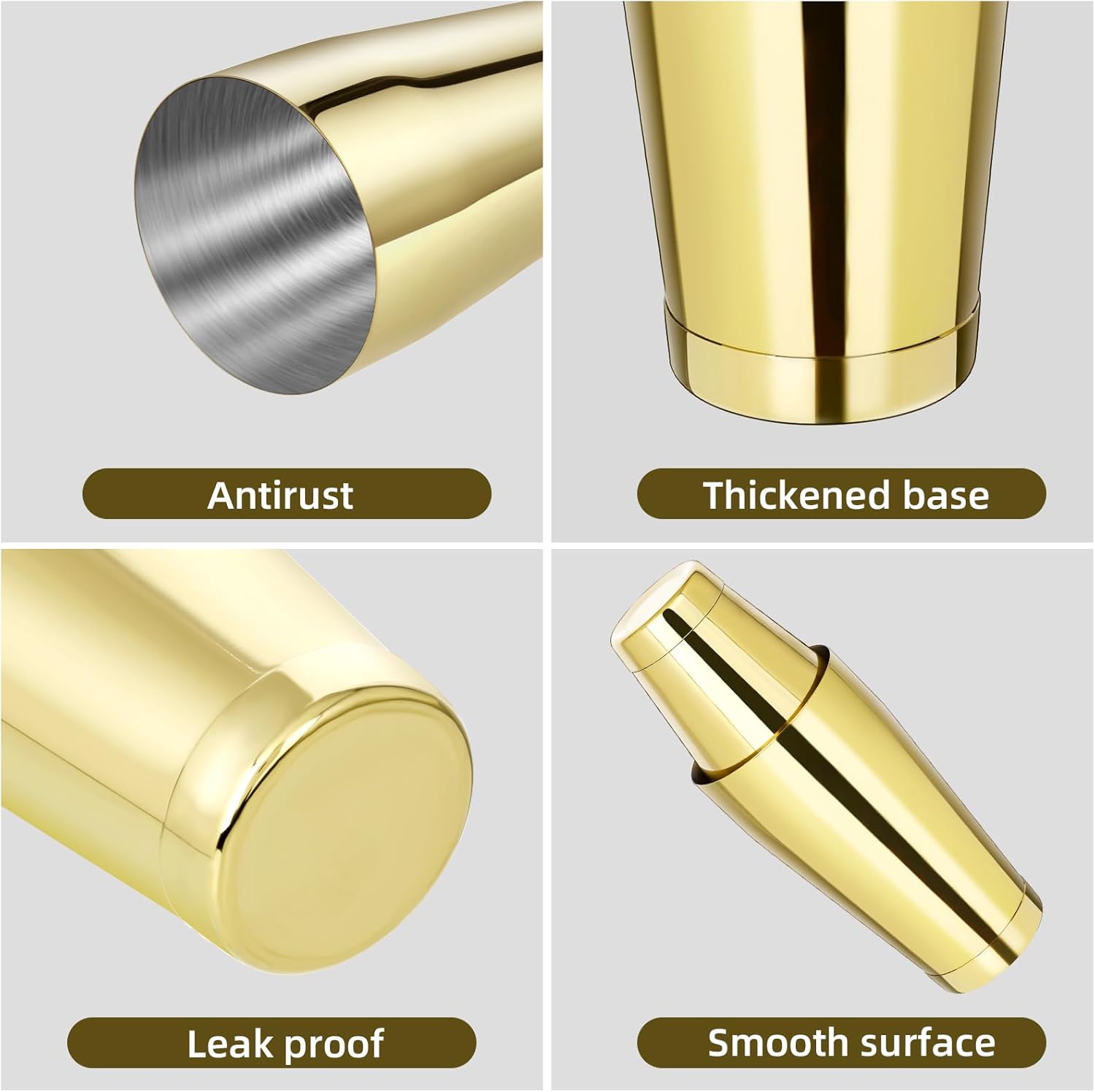 - 【8Pcs Cocktail Shaker Set】The box contains 4 set two-piece construction: 4 pcs large tin 28 oz and 4 pcs small tin 18 ounce for mixing and shaking. This bar shaker set contains everything you need. The quantity of the set is enough for you to give as a favor, take away or use at home