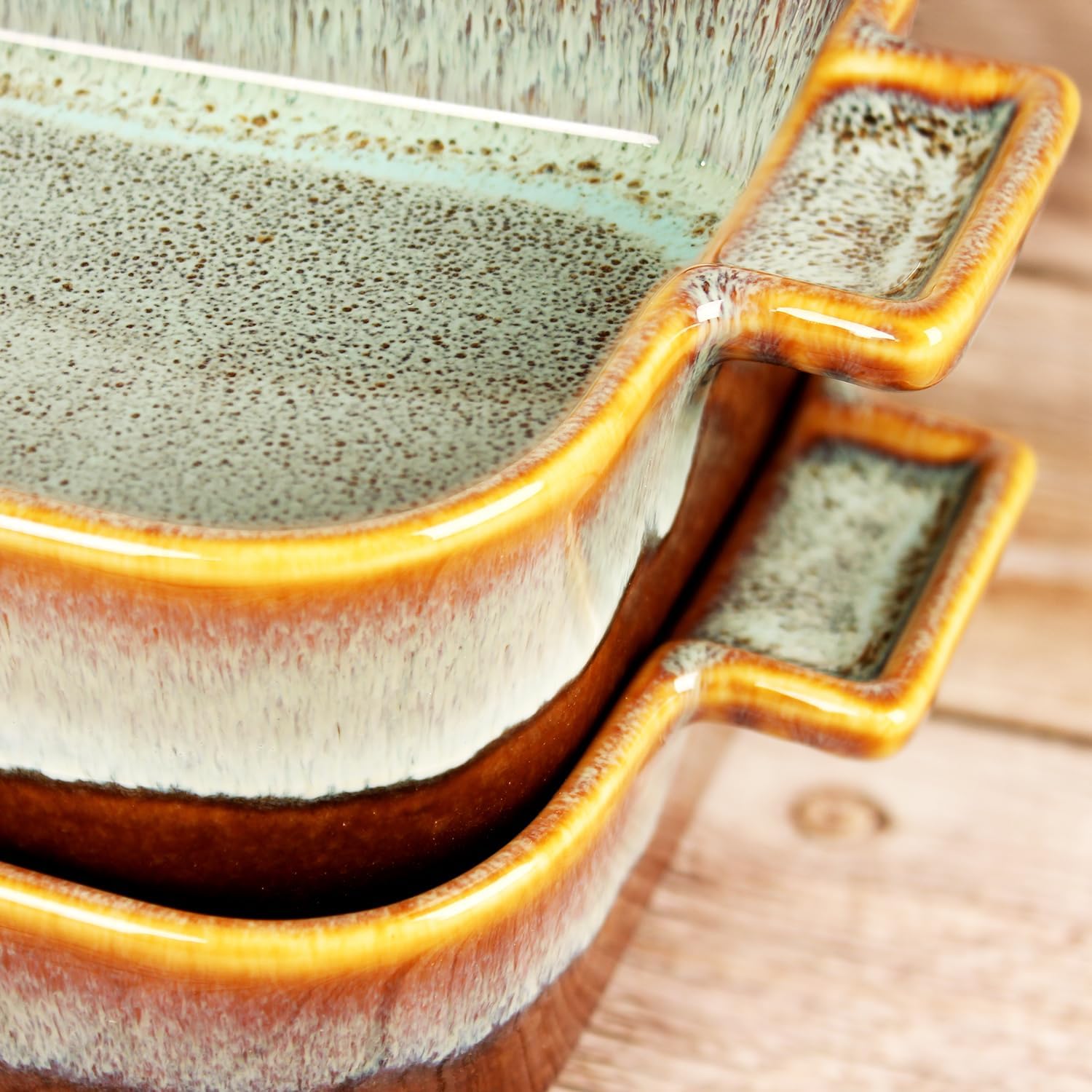 - Durable and Safe: Made from lead-free and pro-grade ceramic, this Casserole dish is designed for safe use and durability, With its double-handled design, the baking dish is easy to carry from the oven or freezer to the table, Deep enough to hold everything with no overflow, even when it's full of piping-hot food. these baking dish are safe to use in refrigerators, microwaves, dishwashers and ovens, It’s made to tolerate high temperatures up to 482°F (250°C).