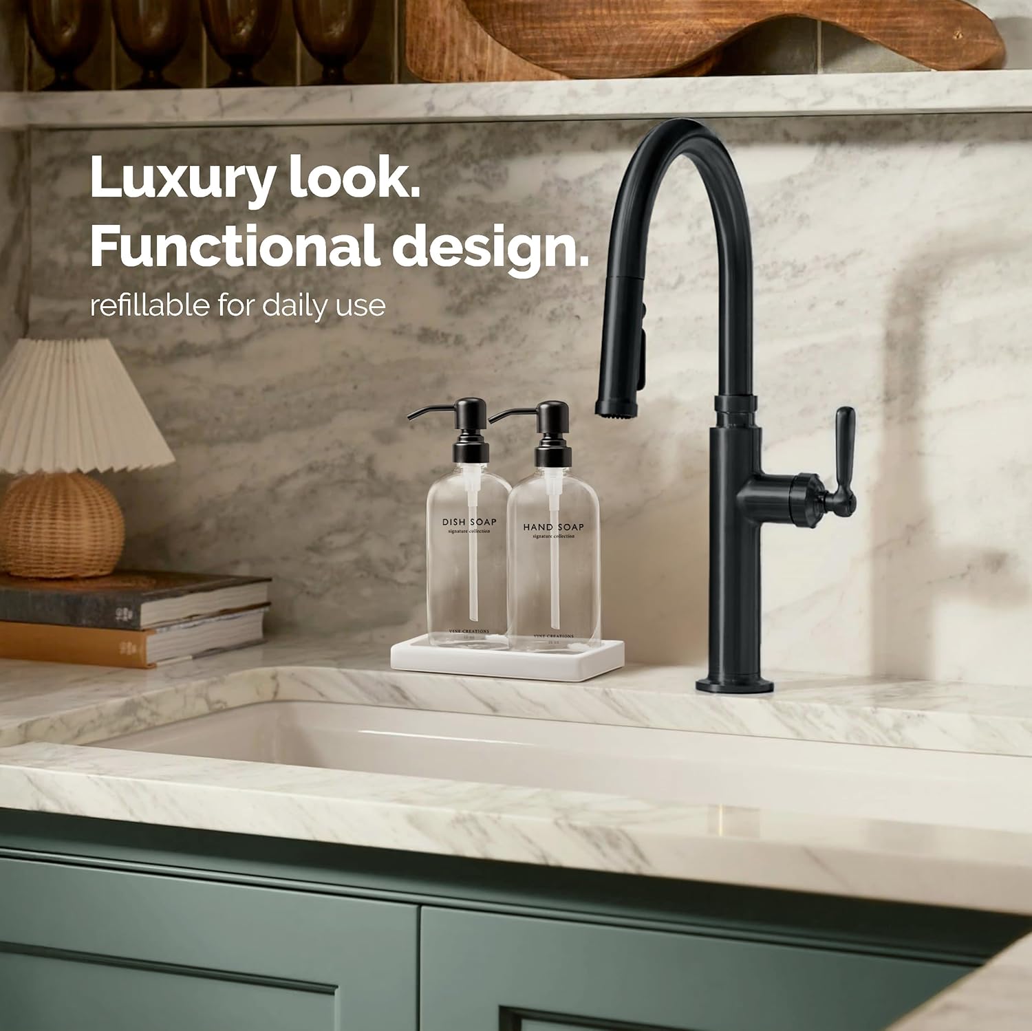 - BUILT TO PERFORM – Each dispenser is topped with a matte black stainless steel pump that’s as durable as it is refined. Rust-resistant, smooth to use, and designed to complement any modern kitchen or bathroom.
