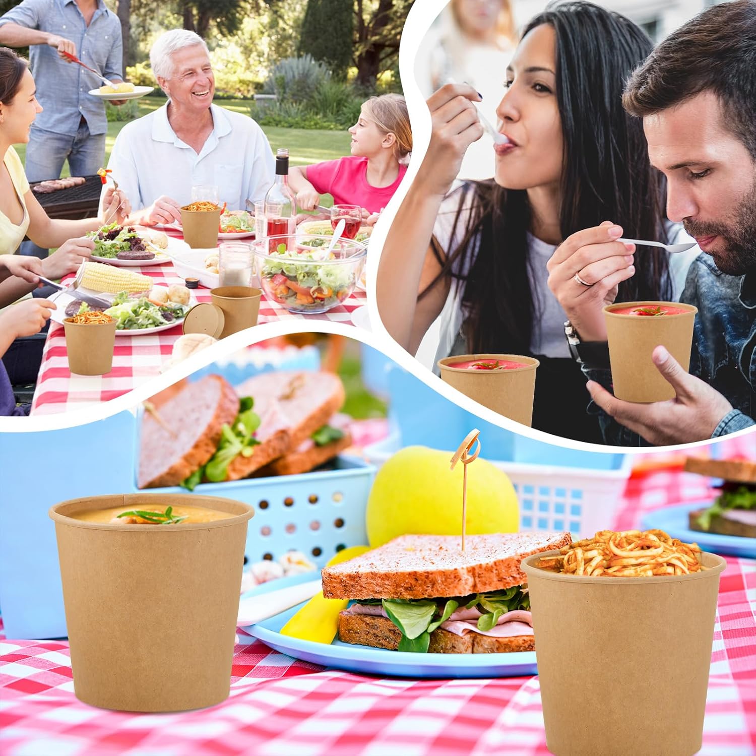 - Vented Lids: the paper soup bowls are featured with vented lids design, can release hot air to prevent the containers from soaking wet, while still maintaining the temperature, and it can prevent dampness from accumulating inside; The top seal is firm, which helps to keep food fresh for a long time