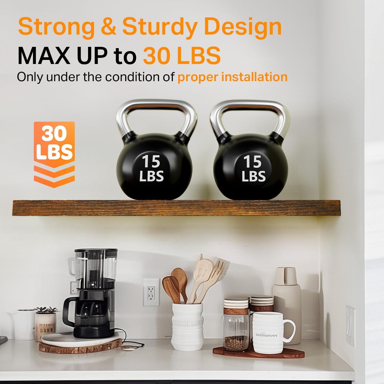 BAYKA Floating Shelves for Wall, 36 inches Wall Mounted Wood Shelves for Bathroom, Bedroom, Living Room, for Storage/Decor with 30lbs Capacity - Rustic Brown,Set of 3