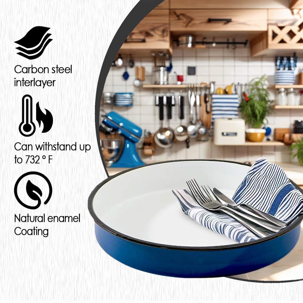 - Capacity design, suitable for various cooking scenarios: This Enamel Roasting Pan has a diameter of 32cm/12.6 inches. It is very suitable for cooking daily household needs such as pizza or pies, and can also meet the needs of cooking roasted chicken