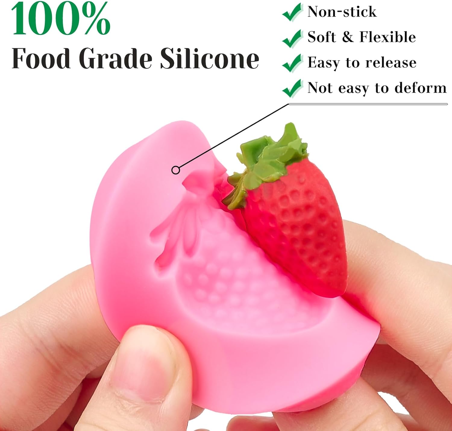 - Versatile: These 3 D silicone strawberry molds can make candies, chocolates, fondants, candles, soaps, wax melts, etc. for decorating strawberry shortcake, sugar cookies, birthday cakes and cupcakes