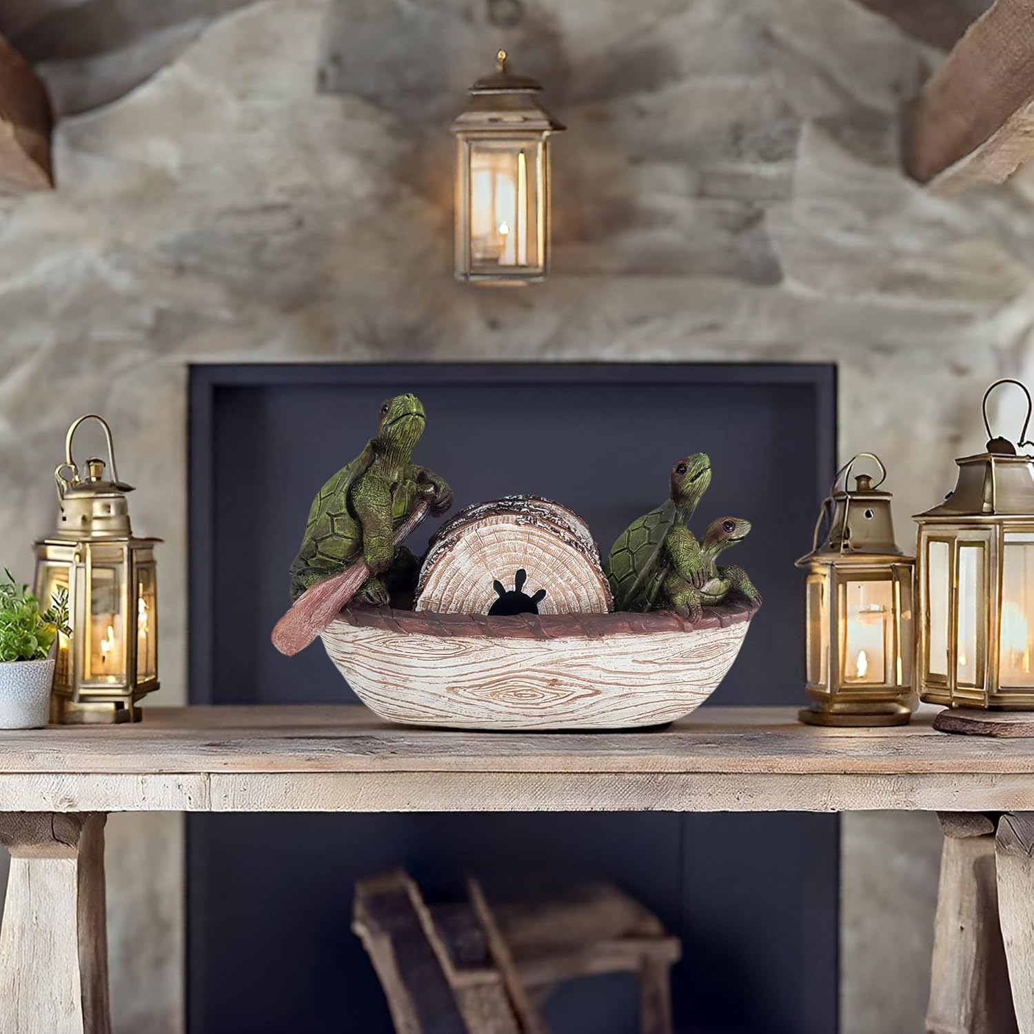- Enhance your coffee table with these rustic coffee table coasters, featuring a handmade canoe design and adorable turtle figurines, perfect for rustic home decor or cabin decorations.