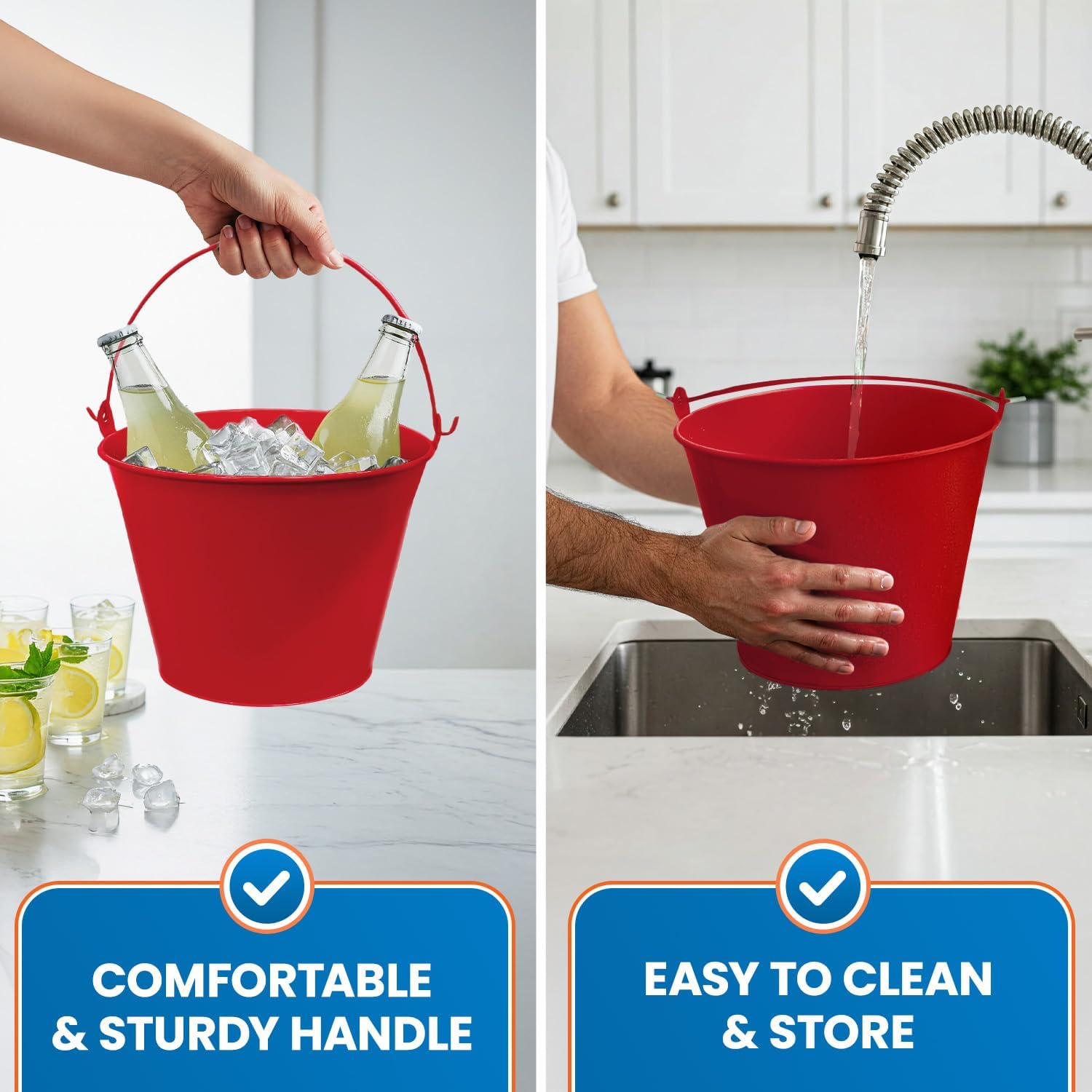 - Easy to carry and transport – The built-in handle makes this small metal bucket easy to move, even when full. Whether using it as a champagne cooler bucket, metal pail bucket, or party bucket for drinks, portability is a breeze.