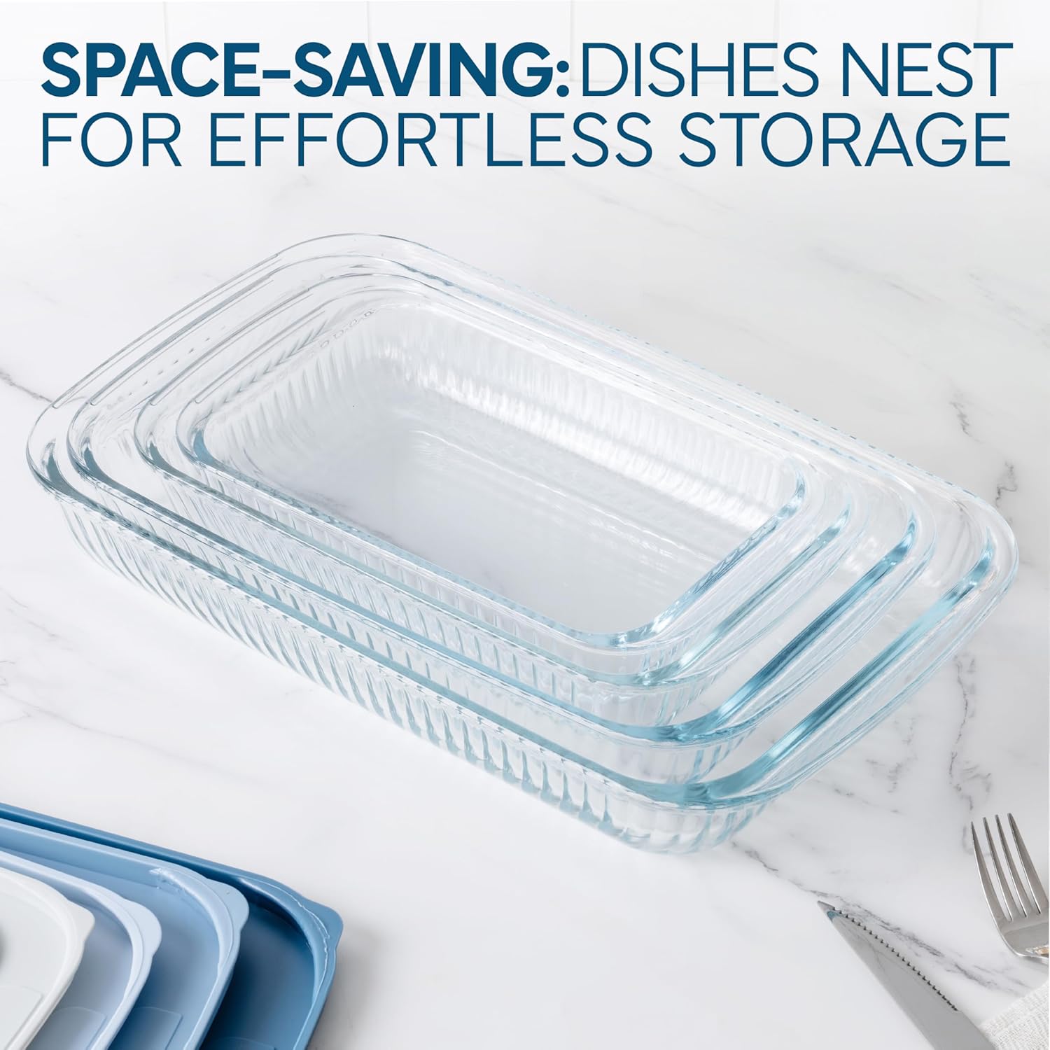 - PREMIUM LARGE BAKING PAN SET: Our baking dishes are made of borosilicate fluted glass, can be used in microwave, oven, freezer and dishwasher, goes straight from the refrigerator to the microwave or oven to the table without the risk of cracking or shattering
