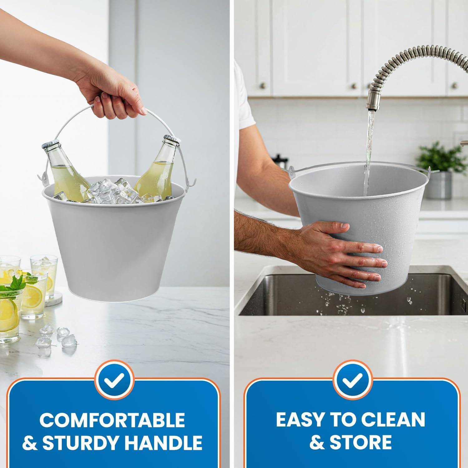 - Easy to carry and transport – The built-in handle makes this small metal bucket easy to move, even when full. Whether using it as a champagne cooler bucket, metal pail bucket, or party bucket for drinks, portability is a breeze.