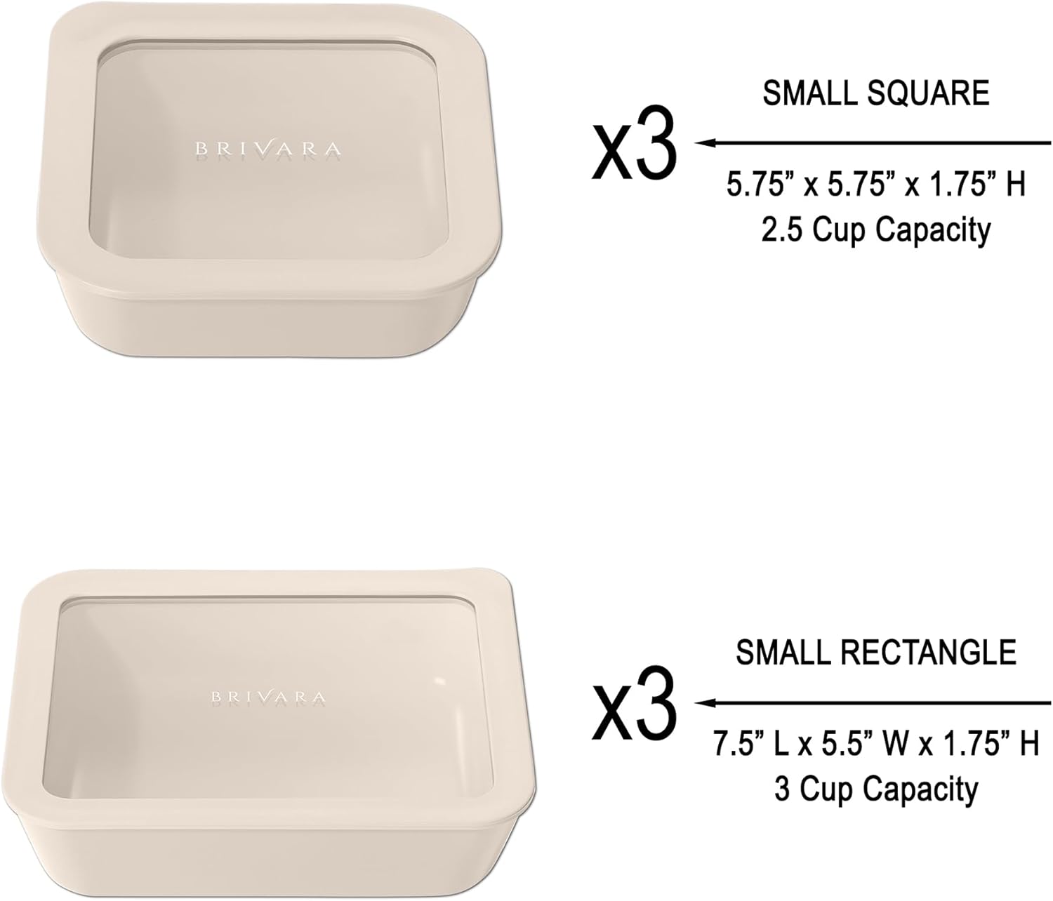 - SET INCLUDES: 3 Small Square (2.5 Cup) and 3 Small Rectangle (3 Cup) containers