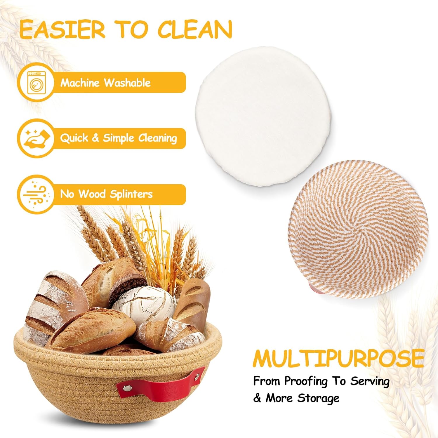 - Breathable Design for Optimal Fermentation – Handmade with high-quality cotton rope, these bread proofing baskets allow excellent airflow to maintain the ideal moisture balance and promote perfect dough fermentation. No sawdust, easy to clean and maintain