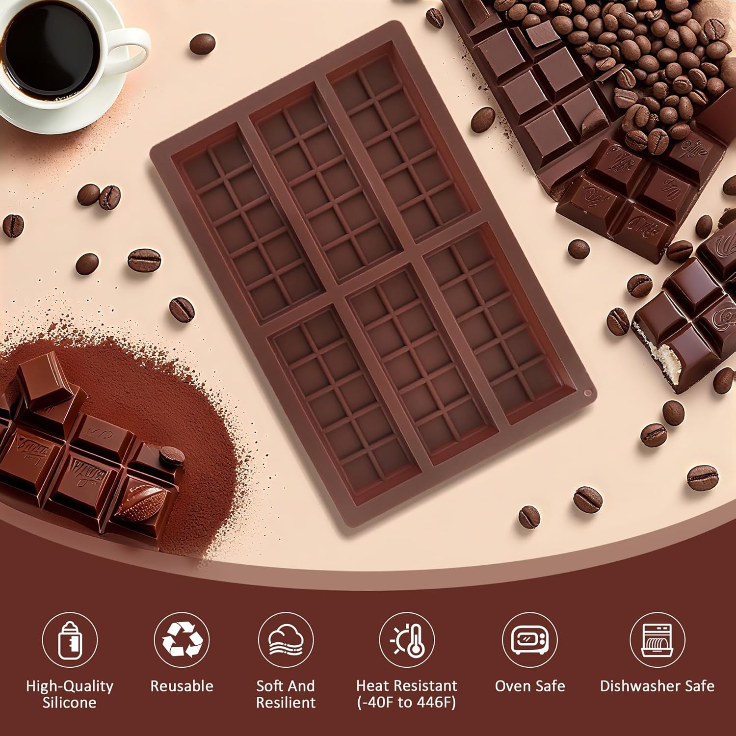 - Non-stick Design: This non-stick silicone chocolate mold allows you to easily remove the chocolate without leaving any residue. Whether you use the chocolate bar mold silicone to make candy bars, protein bars or chocolate bars, it ensures that each piece is perfect with a professional appearance