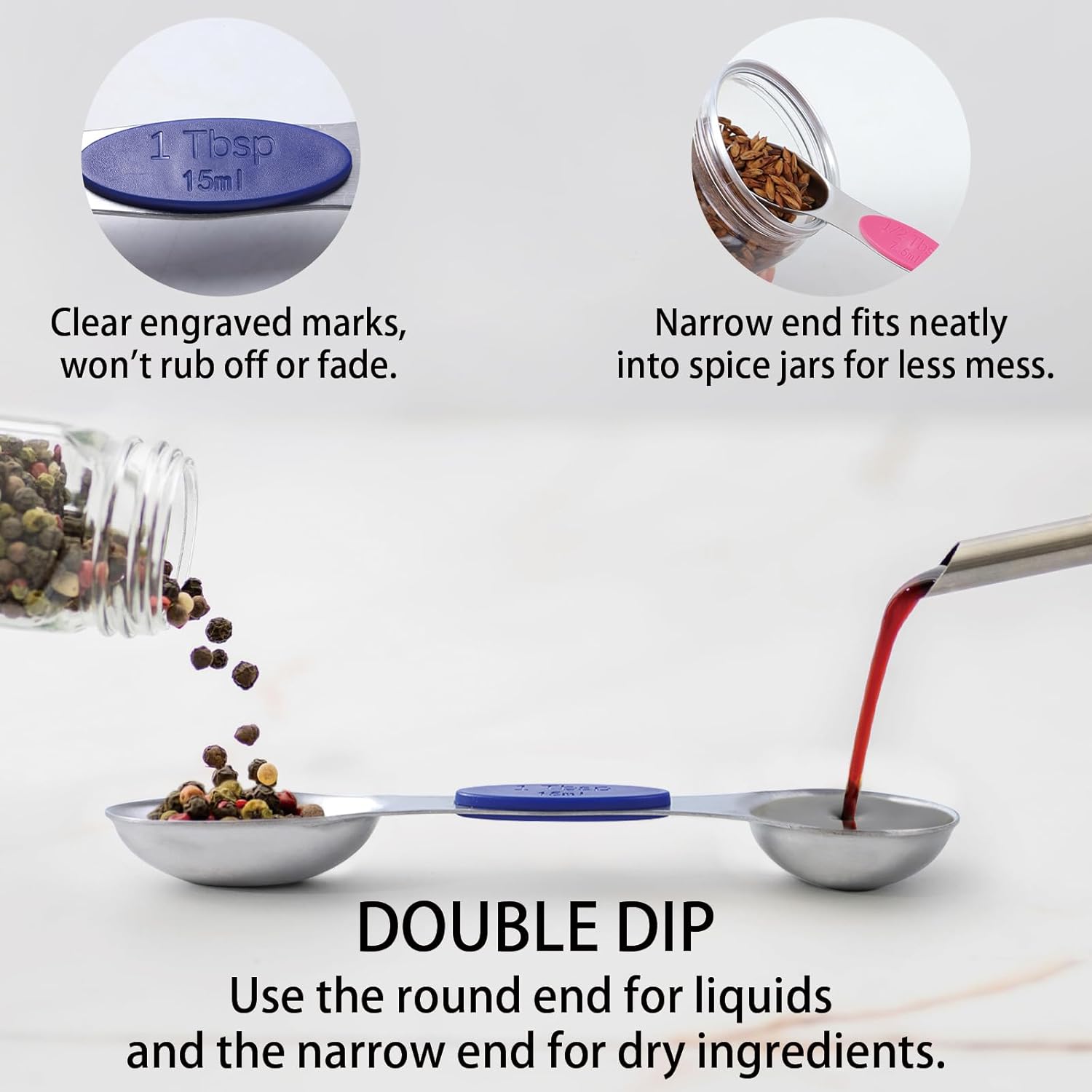 - 【Easy-to-Read & Accurate Measurements】 Precision is key. Unlike painted markings that fade, our measurements are precisely engraved onto the metal, ensuring they never wear off. The bold, easy-to-read fonts and color-coded handles allow you to identify the right size instantly, even when your hands are full of flour. Achieve consistent results every time you bake.