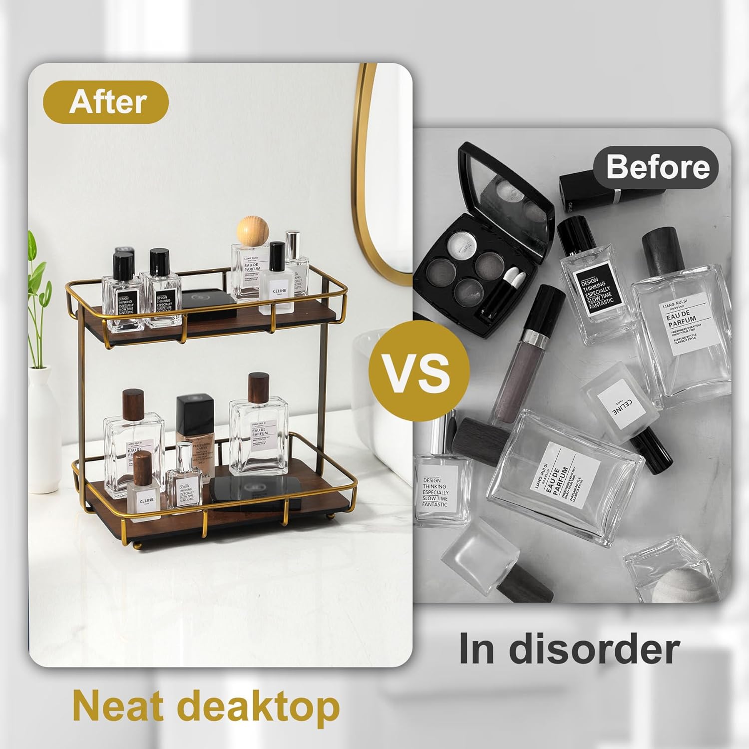 - MULTI-PURPOSE STORAGE SHELF: This countertop organizer is perfect for adding extra storage to small areas like your dresser, sink or kitchen. The modern and simple design of this vanity shelf makes it a great way to declutter and organize your home in a cinch.