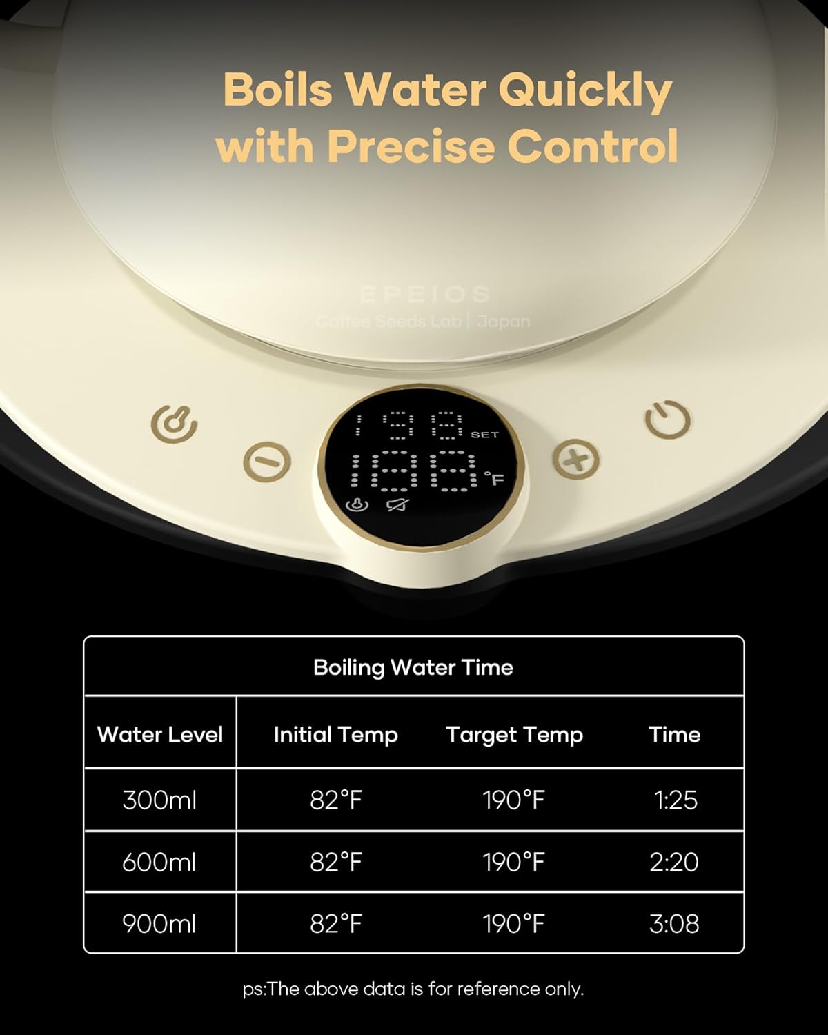 - 1-Hour Keep Warm Function: Keeps water at your desired temperature for up to 1 hour, so your next cup is always ready - perfect for multiple brews or leisurely sipping throughout the day.