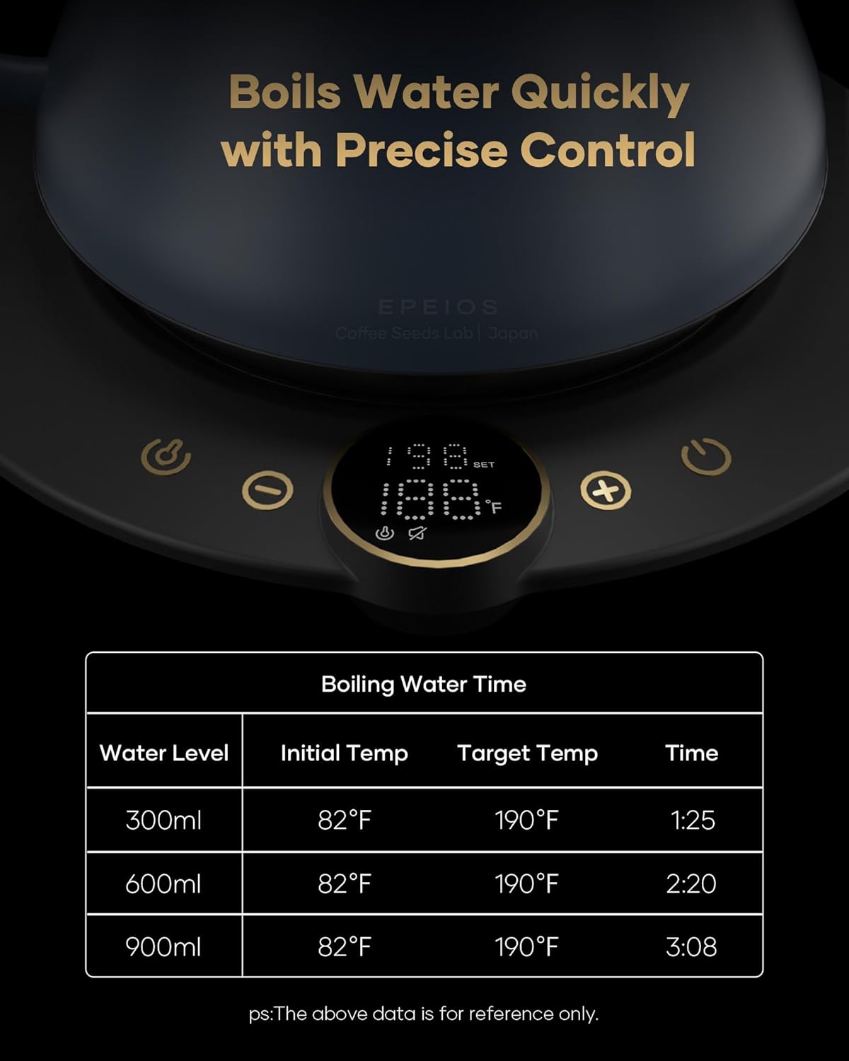 - Precision Heating & Pour Control: Taste every note in your brew, the intelligent base keeps your temperature within ±1°F for flawless extraction, while the S-shaped spout delivers a smooth, steady pour every time.