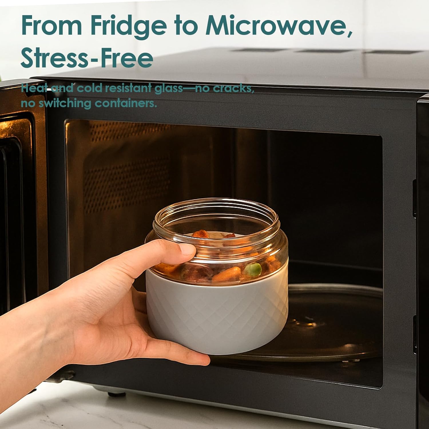 - Microwave & Dishwasher Safe: Reheat meals with ease—our high borosilicate glass withstands extreme temperature changes, going directly from fridge to microwave (remove lid before heating, avoid prolonged heating, not oven-safe)