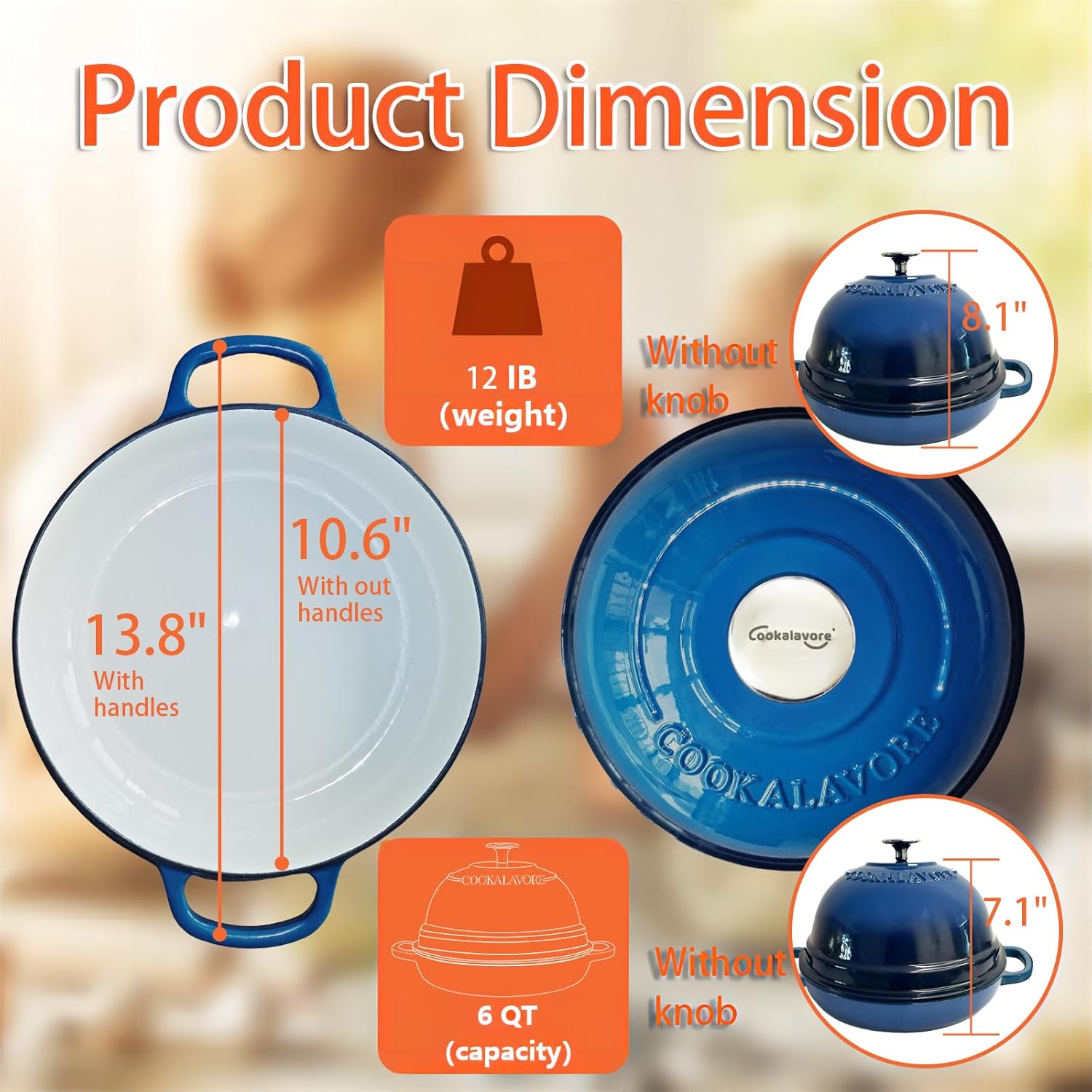 - 🍞GAME-CHANGING INNOVATION:Elevate your baking game with the Cookalavore bread oven!Its innovative dome design ensures optimal steam circulation,guaranteeing that sourdough rises perfectly and develops a mouthwatering golden crust with each bake.13.8" diameter with handles,10.6" without handles,7.6" high with the knob,6 QT Bread oven equipped with Silicone Baking Liner(21"x8.7"),recipes help easily master baking steps,takes your baking game next level.Say hello to effortless baking perfection!