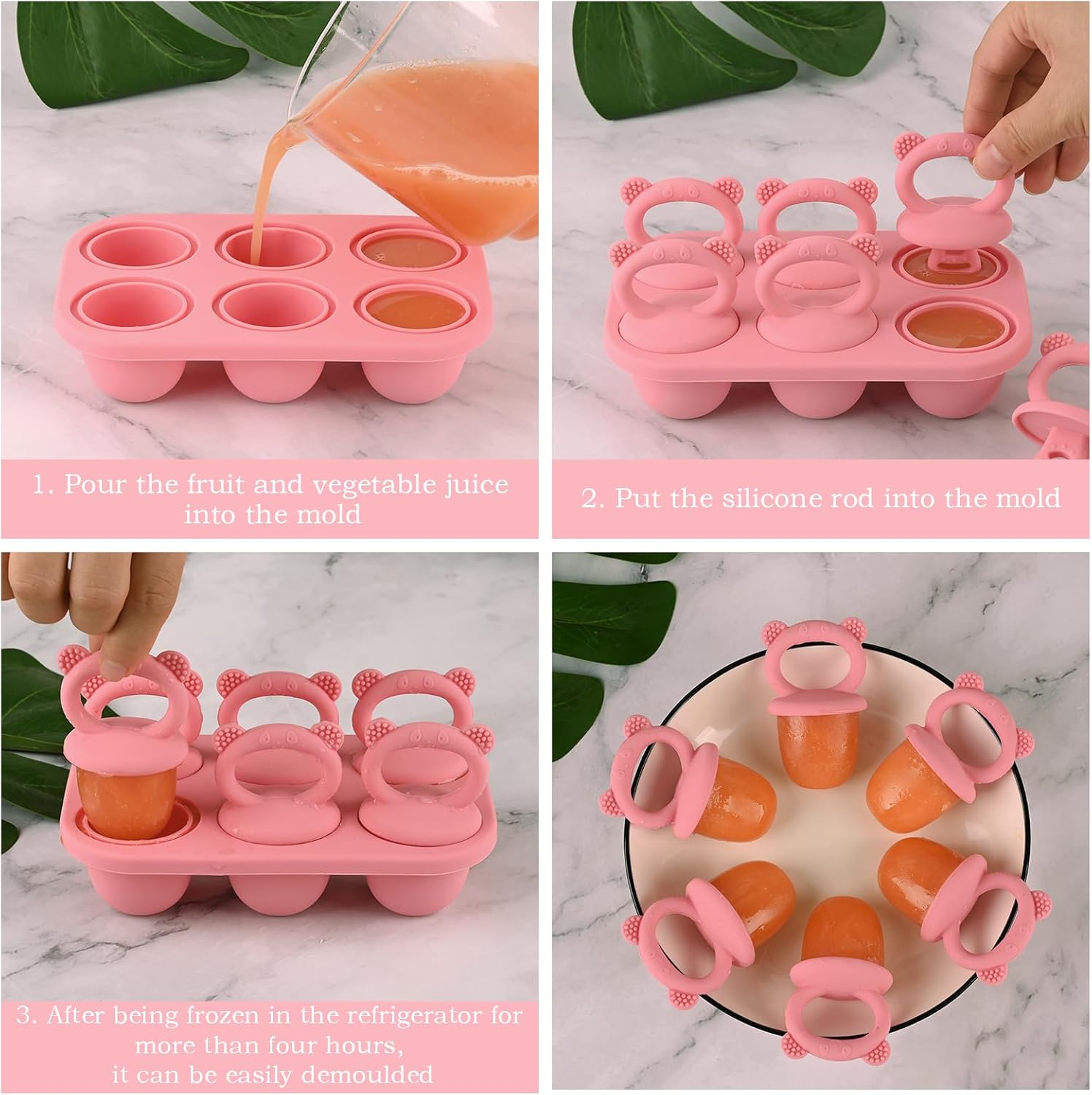 Moukiween Toddler Popsicle Molds Baby Food Storage Containers Suitable for Fresh Frozen Fruit Puree and Yogurt Ice Cream with Handle Food Freezer Trays (Pink)