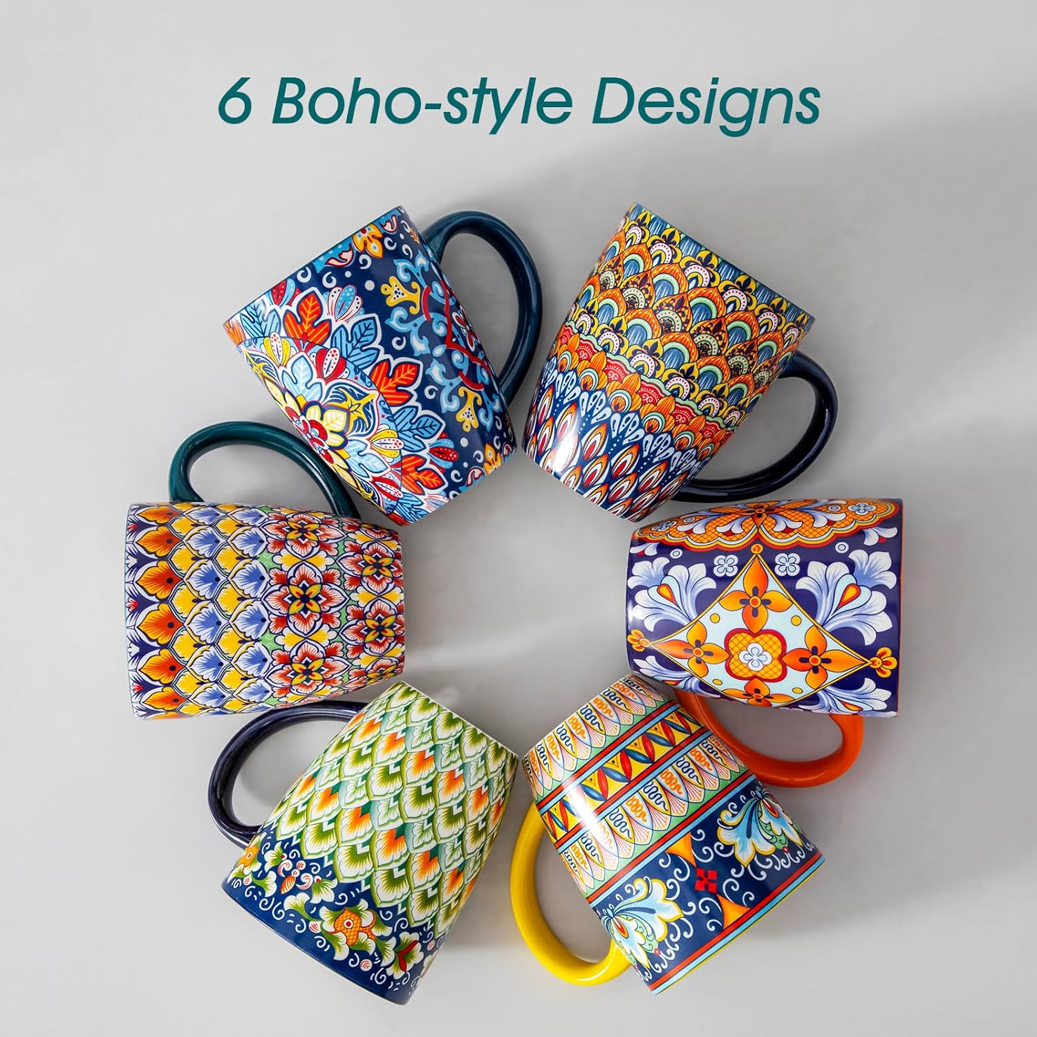 - 【Thoughtful Gift Ready】Vibrant bohemian designs make this mugs set ideal for birthdays, housewarmings and holidays