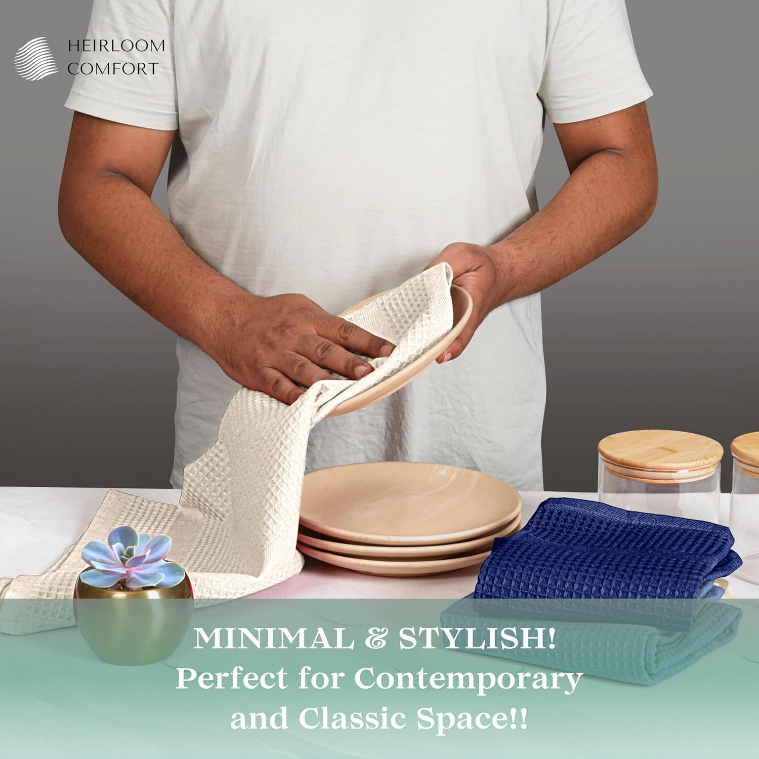 12 Pack Multi Color Waffle Weave Kitchen Towels, 16x26 Inch, 100% Cotton, Super Absorbent, Quick Dry, Hand Towels for Drying Dishes, Cleaning, Durable - Sky Blue, Ivory, Indigo Blue