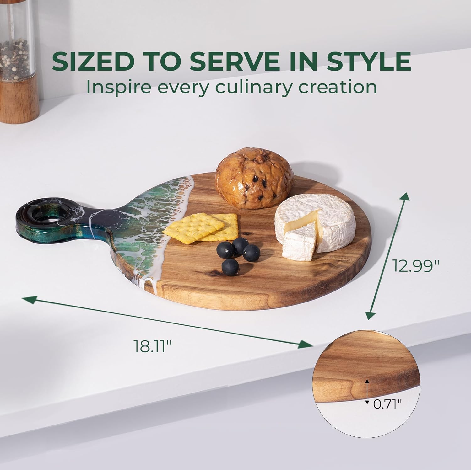 - š©āšØ [šÆššš ššššššš šŗšš-š°ššššššš šØšš]: Handcrafted with ocean-style resin art that flows with natural wood grain. A decorative board that brings coastal detail to kitchen prep or food presentation.