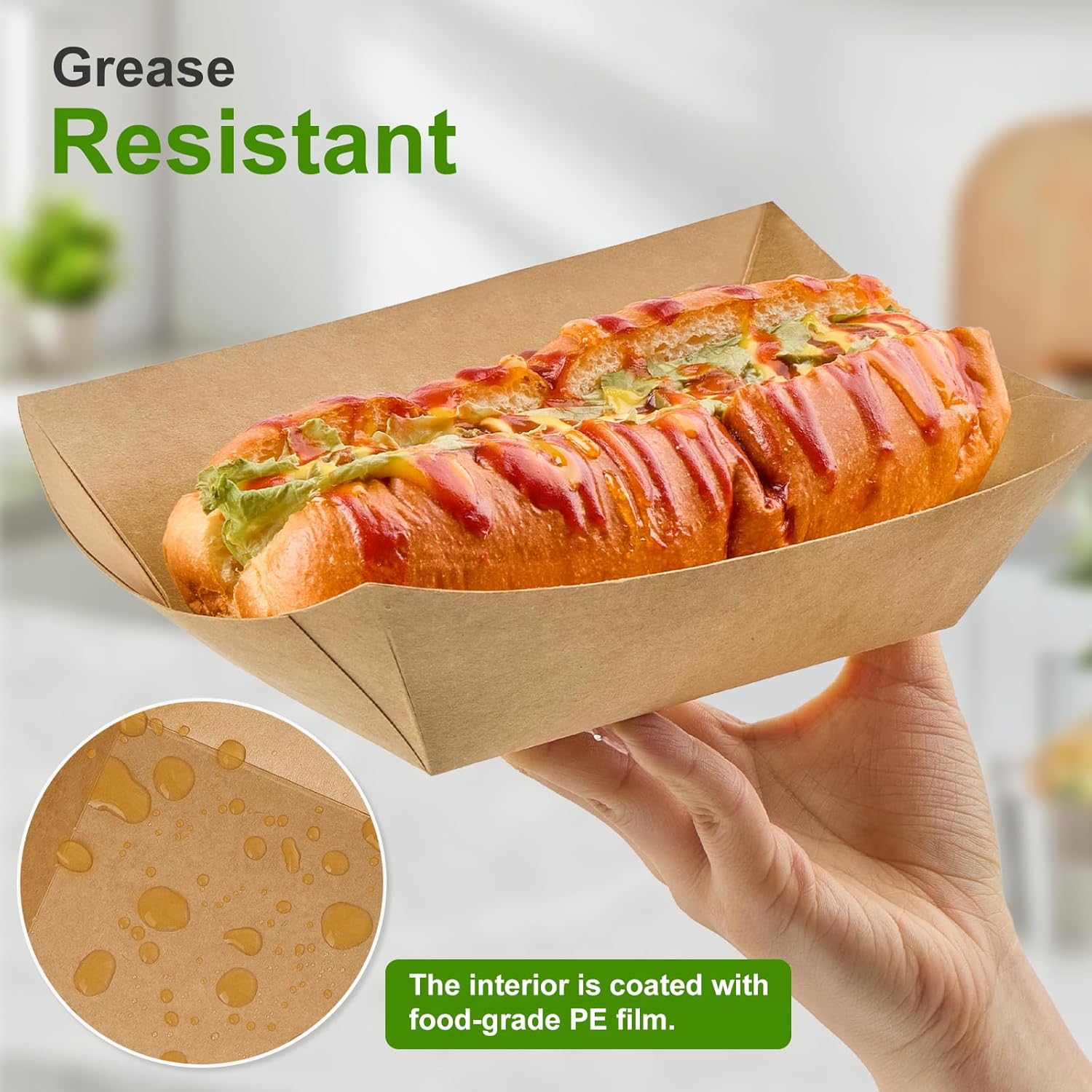 - Superior Food Boats: Our paper food trays are made of quality thickened kraft paper material, sturdy, reliable and microwavable, can be contacted with food directly, not easy to break or wear, you can use them with confidence